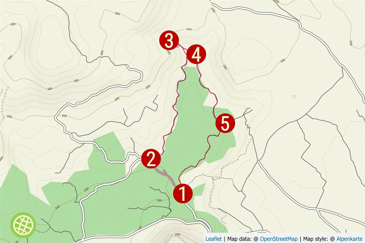 Nach dem beeindruckenden Blick ins Erdinnere gehen wir zunächst auf dem gleichen Weg zurück, aber queren nicht das Bachbett. Wir erreichen eine Schotterpiste, die nur kurz später vom Bachbett weggespült wurde. Mit etwas Kletterei kann man die Stelle überwinden. Der schwindelfreie und trittsichere Wanderer kann über die rechts liegende (04) Wasserleitung (123 m) bequem die andere Seite erreichen.