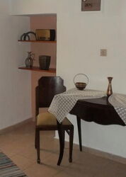 hinunter gehen wir bis zur Tankstelle an der Hauptstraße, dort links, um vor der großen Weinkellerei rechts abzubiegen und die Autobahn zu unterqueren. 90 m hinter der ersten Abbiegemöglichkeit nach rechts verlassen wir die Straße nach rechts auf dem Pfad. Wir gehen nun weglos durch die angelegten Terrassenfelder, ca. 180 m bergauf, bis wir wieder die Asphaltstraße unter den Füßen haben. Rechts befindet sich der weiterführende Weg in Richtung der kleinen, malerischen Stadt 05 Epano Archanes (397 m). Dort folgen wir der Ausschilderung zur Villa Orestis. Das Kretische Historische und Folklore Museum, das Archäologische Museum von Archanes sowie verschiedene Restaurants und Tavernen auf dem zentralen Platz laden zum Verweilen ein.
