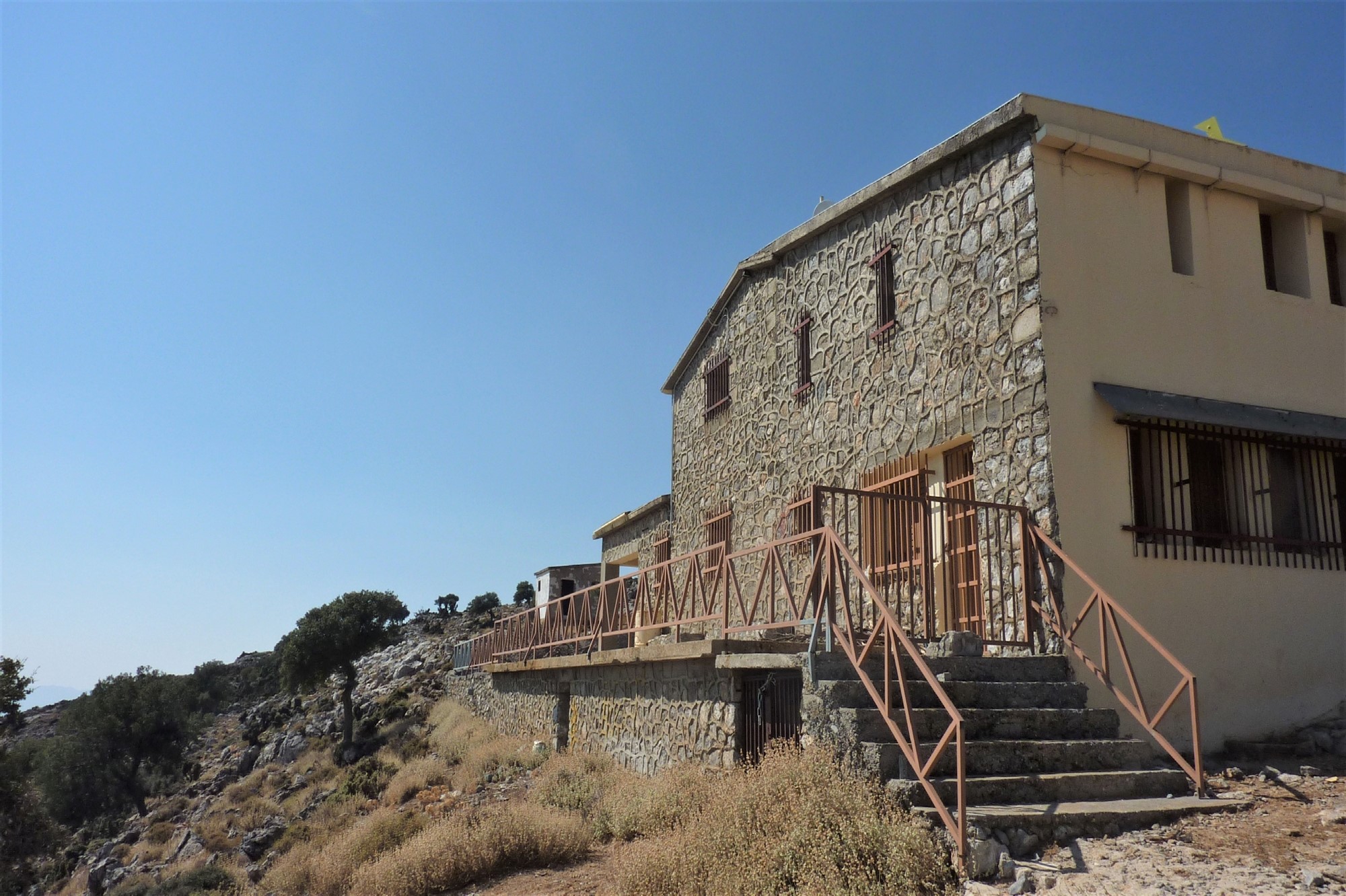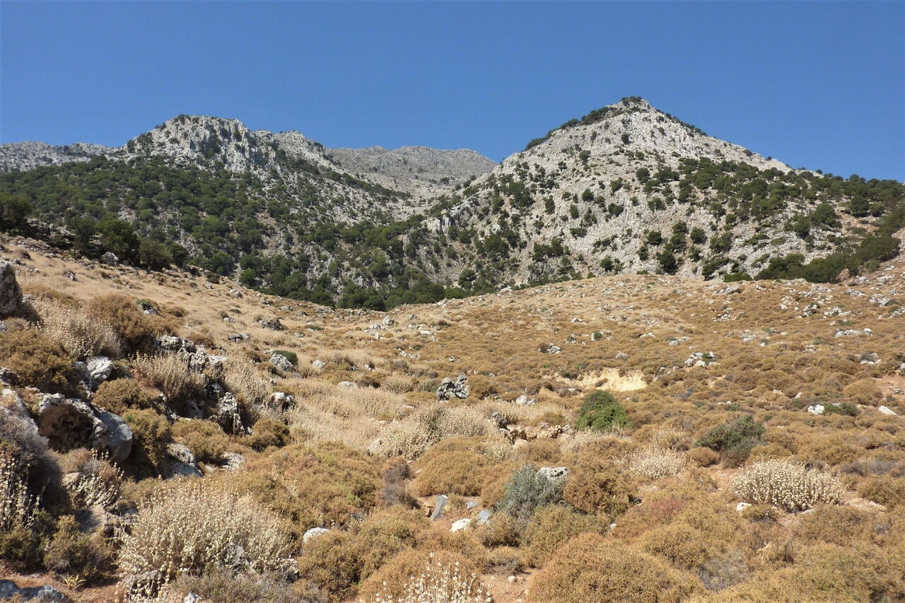 Diese Wegstrecke ist mit bedacht auf wenige Kilometer und relativ wenige Höhenmeter begrenzt, weil die Anschlussrouten, egal welche der beiden Varianten gewählt wird, wk_1013 zur Ida Taverne oder wk_1031 nach Zaros, schwarze Touren sind, die es in sich haben. In der Regel unruhiger Schlaf in der Natur und ein erhöhtes Packgewicht kommen erschwerend dazu. Nach dem kurzen Anstieg zur Hütte genießen wir eine spektakuläre Fernsicht in überwältigender Natur. Leider wird die Hütte nur auf Anfrage geöffnet und das Schlüsselbringen kostet alleine 75 €. Ruhe vor dem Sturm!