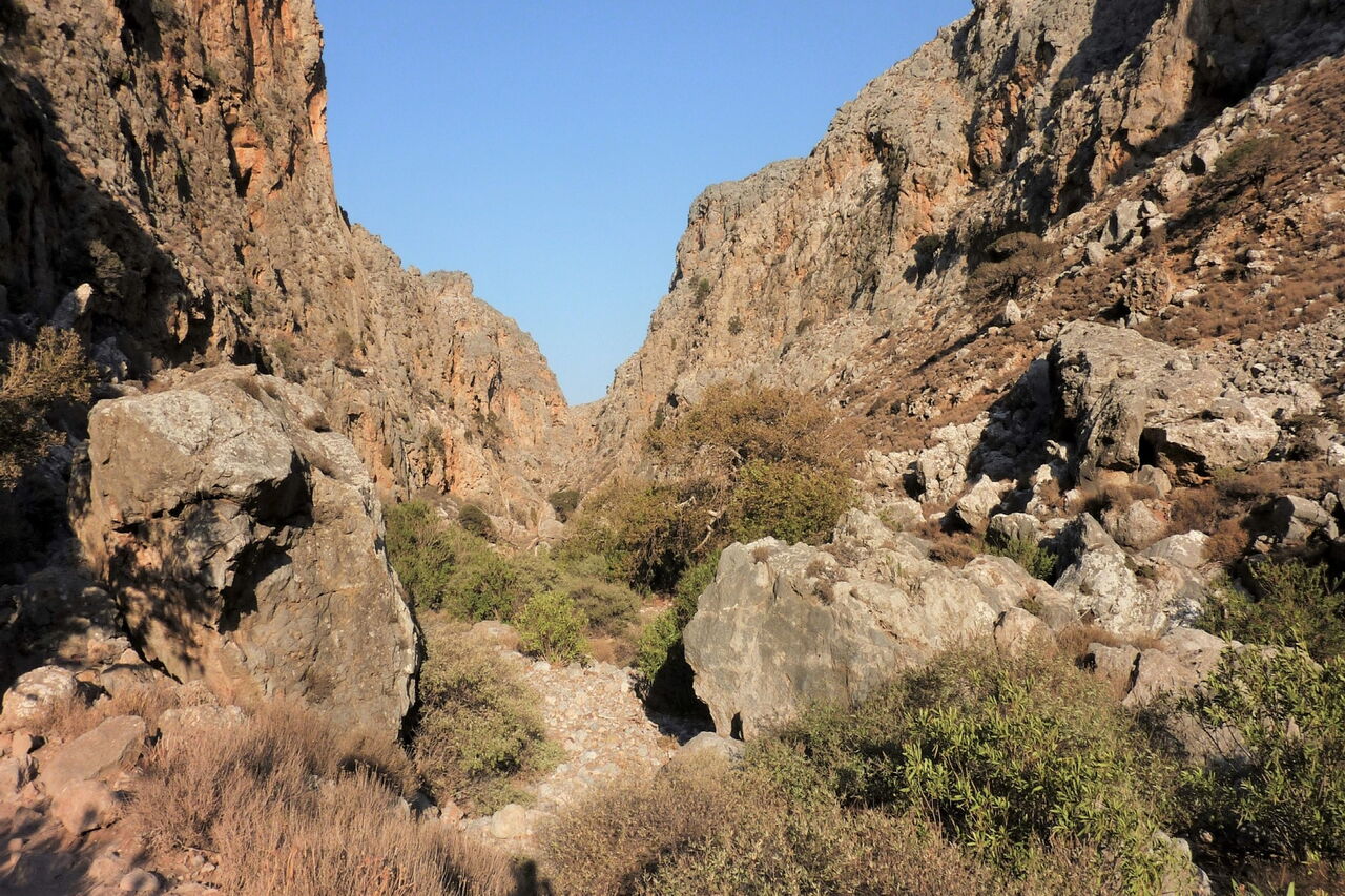Die Schlucht der Toten gehört mit zu den interessantesten Schluchten auf Kreta und befindet sich am Anfang oder am Ende des europäischen Fernwanderwegs E4. Es geht durch eine fantastische Landschaft, denn der Canyon hat sich tief in seine Umgebung eingefräst und wird durch bis zu 200 m hohe dunkelrote Felswände begrenzt. Mit dem minoischen Palast von Kato Zakros erwartet uns zudem ein besonderes kulturelles Highlight. Diese faszinierende Wanderung verknüpft kulturelle und landschaftliche Höhepunkte – ein bleibendes Erlebnis.