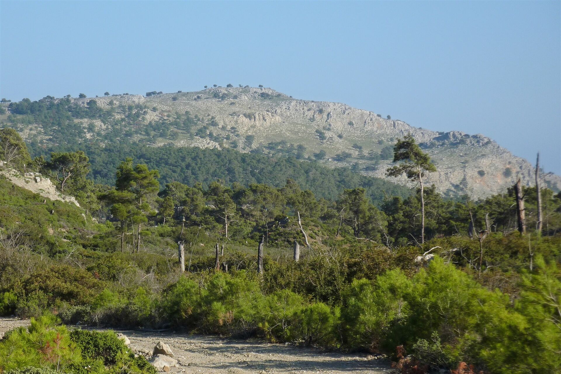 Die Region unterhalb des 292 m hohen Berges Stafilia im Südosten der Insel gehört zu den neueren Feriendomizilen und entwickelt sich in rasender Geschwindigkeit. Kein Wunder, denn die nahezu perfekten Sandstrände von Katsouni und Glystra locken mit kristallklarem Wasser. Am nördlichen Ende der Umgehungsstraße beginnt unsere Wanderung. Es bedarf nur weniger Schritte und wir sind fernab vom Touristenrummel. Der Weg führt durch einen wohlriechenden und in warmen Sommermonaten schattenspendenden Kiefernwald. Das Nonnenkloster Moni Ipsenis liegt idyllisch zwischen Olivenhainen und Kiefernwäldern. Auf Waldwegen geht es wieder zurück.