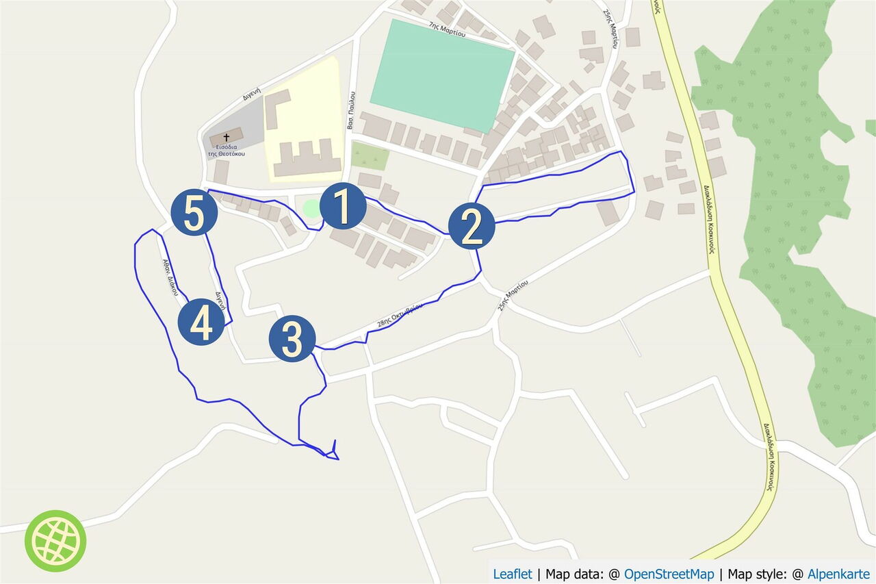 Einfacher Spaziergang durch Gassen. Leicht verliert man in dem Häuserlabyrinth die Orientierung. Art des Weges: 50 % aus Asphaltstraßen und 50 % gepflasterte Gassen. Ausrüstungsempfehlung: keine. Einkehr: die Taverne von O Giannis. Sie befindet sich auf der Route, ist aber nur abends geöffnet. Beste Jahreszeit für diese Tour: April bis Oktober. Tipp für den Fotografen: Im späten Abendlicht ergeben sich grandiose Farbenspiele.
