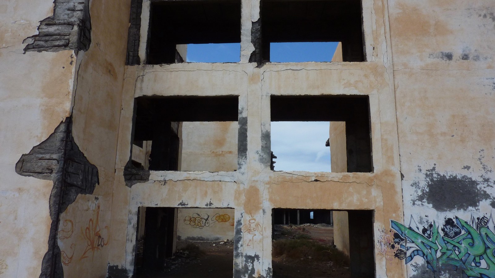 Immer deutlicher lässt sich am Horizont die (03) Bauruine (26 m) des geplanten Hotels Atlante del Sol erkennen, auf die wir nun direkt zusteuern. Bei den Vulkanausbrüchen der Neuzeit erschuf die Natur eine bizarre Mondlandschaft. In den siebziger Jahren verwüsteten Immobilienspekulanten und Baulöwen vieles, was die Natur zuvor noch verschont hatte. Neben diesem Zeitzeugen werden wir am Playa Blanca sehr viele weitere leer stehende Apartmentanlagen und Bauruinen antreffen.