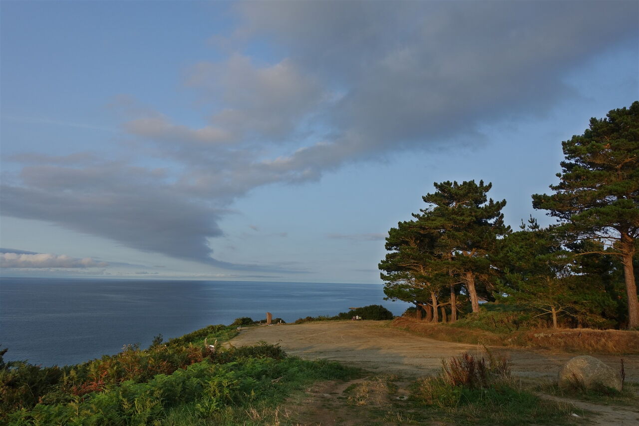 Bei der darauffolgenden Weggabelung gehen wir halb links und im weiteren Verlauf zunächst an Feldern entlang, dann durch ein kleines Waldstück und schließlich durch die Hortensienallee. Am Ende der Dreißigerzone – rechts geht es zur Pointe de Plouha – gehen wir geradeaus weiter. Dort, wo die Piste in die Straße mündet, gehen wir halb links. Sobald die Straße endet, gehen wir auf dem nachfolgenden Feldweg geradeaus weiter. Nach leichtem Abstieg gabelt sich der Weg, rechts geht es zum Plage Le Palus herunter, wir gehen halb links auf dem beginnenden Küstenpfad, dem GR 34. Nachdem wir mehrere steinige Buchten umlaufen haben, erreichen wir die 04 Pointe de Plouha (104 m), die höchste Klippe entlang der bretonischen Küste mit einem atemberaubenden Tief- und Fernblick.