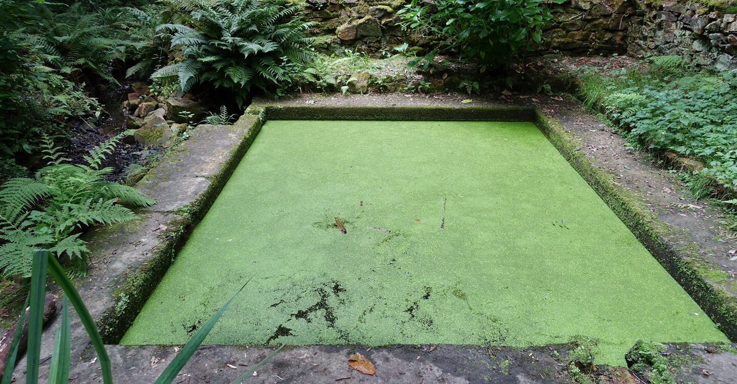 Hinter einem 03 grünen Teich im Wald (79 m) gabelt sich der Weg, hier gehen wir halb links. Einen grünen Wintergarten lassen wir auf der rechten Seite liegen und gehen auf dem Weg weiter, bis er endet. An der darauffolgenden Straße halten wir uns links und gehen bei der nächsten Möglichkeit – hinter der Steinmauer – rechts. Der Pfad durch das Unterholz mündet in einen Wirtschaftsweg, auf dem wir geradeaus weitergehen. Bei einem Steinhaus angekommen, gehen wir links und folgen dem Verlauf der Straße – an einem Kreuz aus Stein vorbei – durch die Ortschaft Kersalic, bis die Straße bei einem Strommast aus Metall endet. Hier gehen wir rechts an der hohen Steinmauer entlang. Den nachfolgenden rechten Abzweiger ignorieren wir, biegen dann aber bei der Hausnummer 17 und dem roten Gartentor links in die Straße ein.