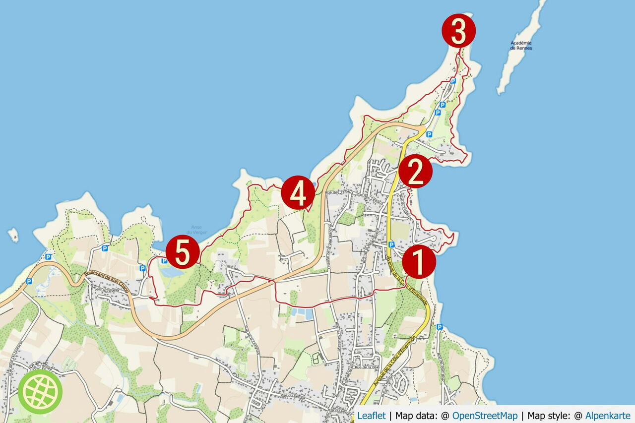 Die Landspitze La Pointe du Grouin begrenzt Richtung Westen die Bucht, in der sich die weltbekannte Abtei Le Mont-Saint-Michel aus dem Meer erhebt, die man bei guter Sicht ausmachen kann. In direkter Nachbarschaft der Landspitze, in östlicher Richtung, sieht man die Ile des Landes, ein Vogel- und Pflanzenschutzgebiet. In 32 km Entfernung lässt sich in westlicher Richtung das Kap Fréhel mit dem vorgelagerten Fort la Latte erkennen. Auf dieser herrlichen Wanderung durch die vom Wind verwehte Landschaft geht es entlang typischer bretonischer Küstenorte und Traumstrände. Nichts senkt den Stresslevel zuverlässiger als der Aufenthalt am Meer.