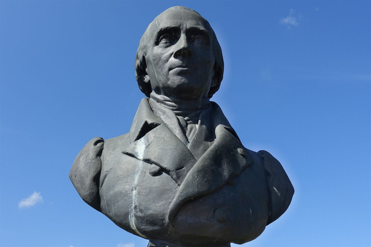 Wir gehen bis zur Stelle am See zurück und dann dort geradeaus weiter. Hinter einem weiteren Steinkreuz erreichen wir erste Häuser, gehen durch die Einbahnstraße, am Friedhof vorbei und direkt auf die Büste von 05 René-Louiches Fountains Tremblay (71 m) zu, der in der Nähe von Tremblay geboren wurde. Er lebte von 1750 bis 1833, war passionierter Botaniker und Mitglied der französischen Akademie der Wissenschaften und Medizin. Gehen wir in der eingeschlagenen Richtung weiter, so erreichen wir die Hauptstraße – rechts befindet sich der Parkplatz.