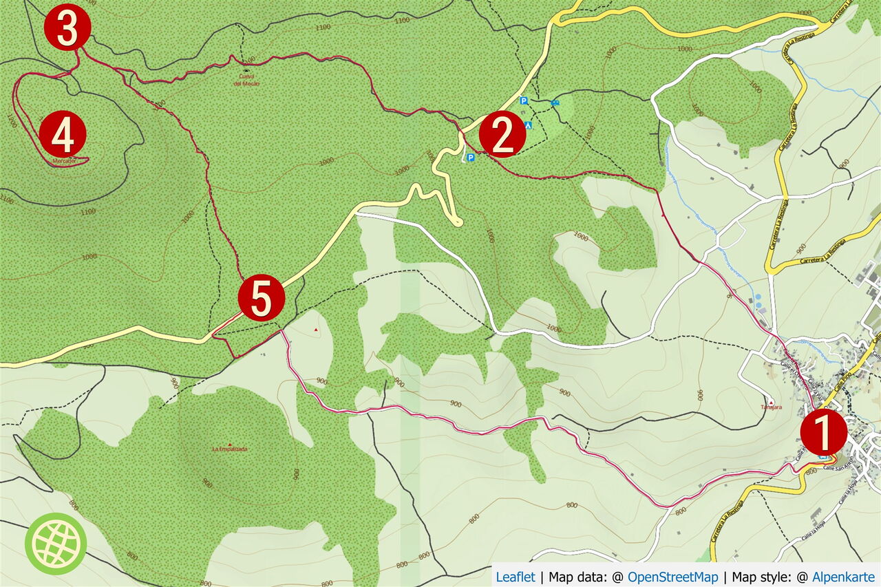 Von dort gehen wir auf der landeinwärts führenden Piste bergauf, bevor wir 100 m nach einer links abzweigenden Teerstraße rechts auf den (05) Camino Richtung San Andres (844 m) abbiegen. Schon bald ist in der Ferne der hohe Wassertank auszumachen, der Ausgangspunkt unserer Wanderung.