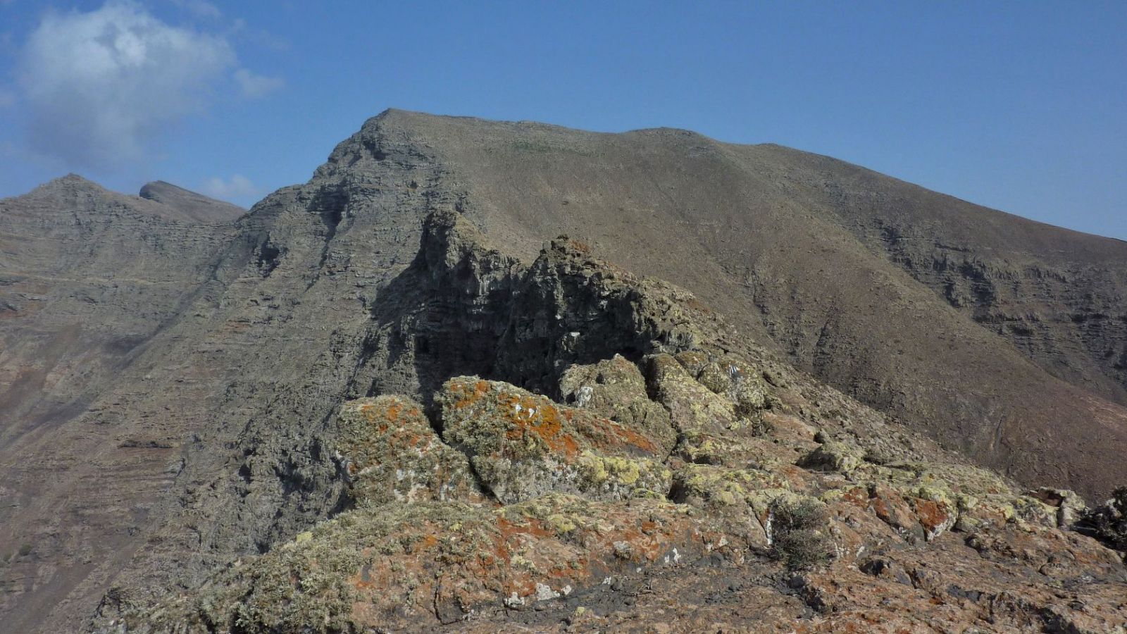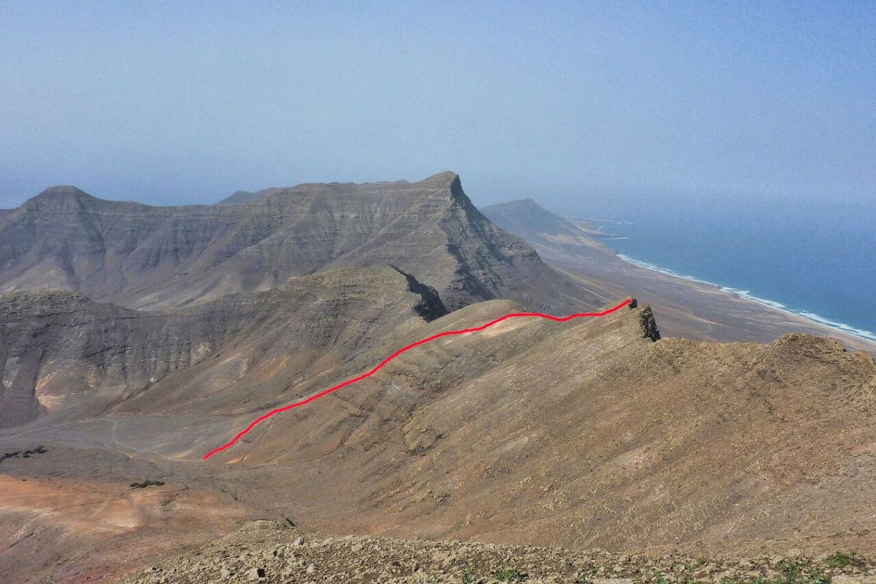 Hat man noch keine Wanderung im Jandia-Bergmassiv unternommen oder ist man mit dem Pkw über die Schotterpiste nach Cofete gefahren, so hatte man noch keine Gelegenheit, die wildromantische Westküste Fuerteventuras zu sehen. Diese Tour eröffnet einen ersten Einblick in diese besondere Naturlandschaft. Fuerteventuras Entstehungsgeschichte basiert auf drei Hauptvulkanen. Der heutige Wanderweg führt auf den ehemaligen Kraterrand eines viel größeren Vulkans, der nach einem Einsturz eine Seite an das Meer verloren hat. Dieses Ereignis lässt sich von dem Aussichtspunkt am Ende des Wanderwegs sehr gut nachvollziehen.