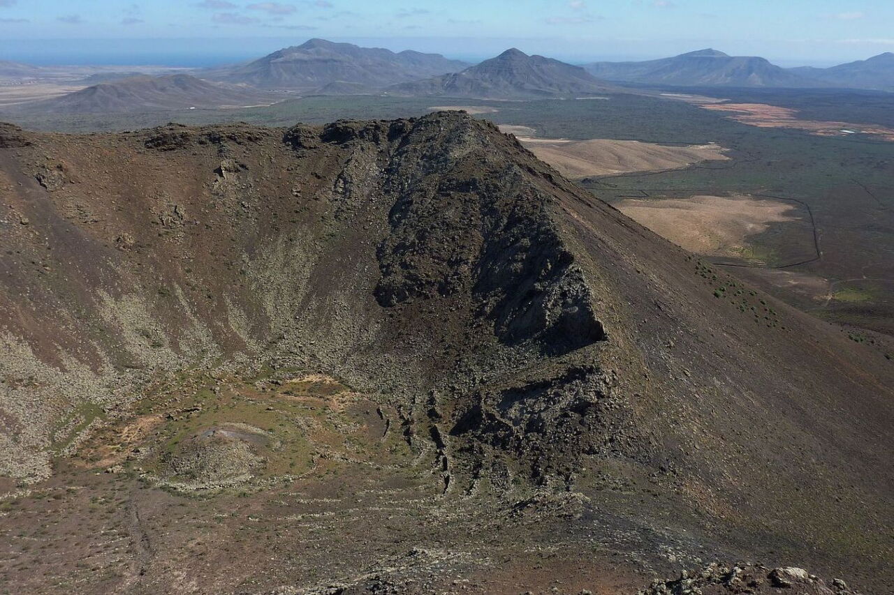 Die letzten vulkanischen Aktivitäten auf Fuerteventura erloschen vor 4.000 bis 5.000 Jahren. Dabei waren das Naturdenkmal Caldera de Gairia – Ziel der heutigen Wanderung – und der Vulkan de la Arena im Norden von Fuerteventura die letzten aktiven Vulkane. Nachdem wir die Tomatenplantagen von Tiscamanita hinter uns gelassen haben, beginnt ein spektakulärer Aufstieg über den südlichen Grat der Caldera de Gairia auf den Kraterrand. Besonders beeindruckend ist es, an dieser Stelle nachzuvollziehen, wie sich der Lavastrom seinen Weg Richtung Osten bis nach Pozo Negro und weiter ins Meer bahnte. Beim spektakulären Abstieg geht es vorbei an zwei großen Erosionseinbrüchen – ein Muss für jeden geologisch oder an Vulkanen Interessierten.