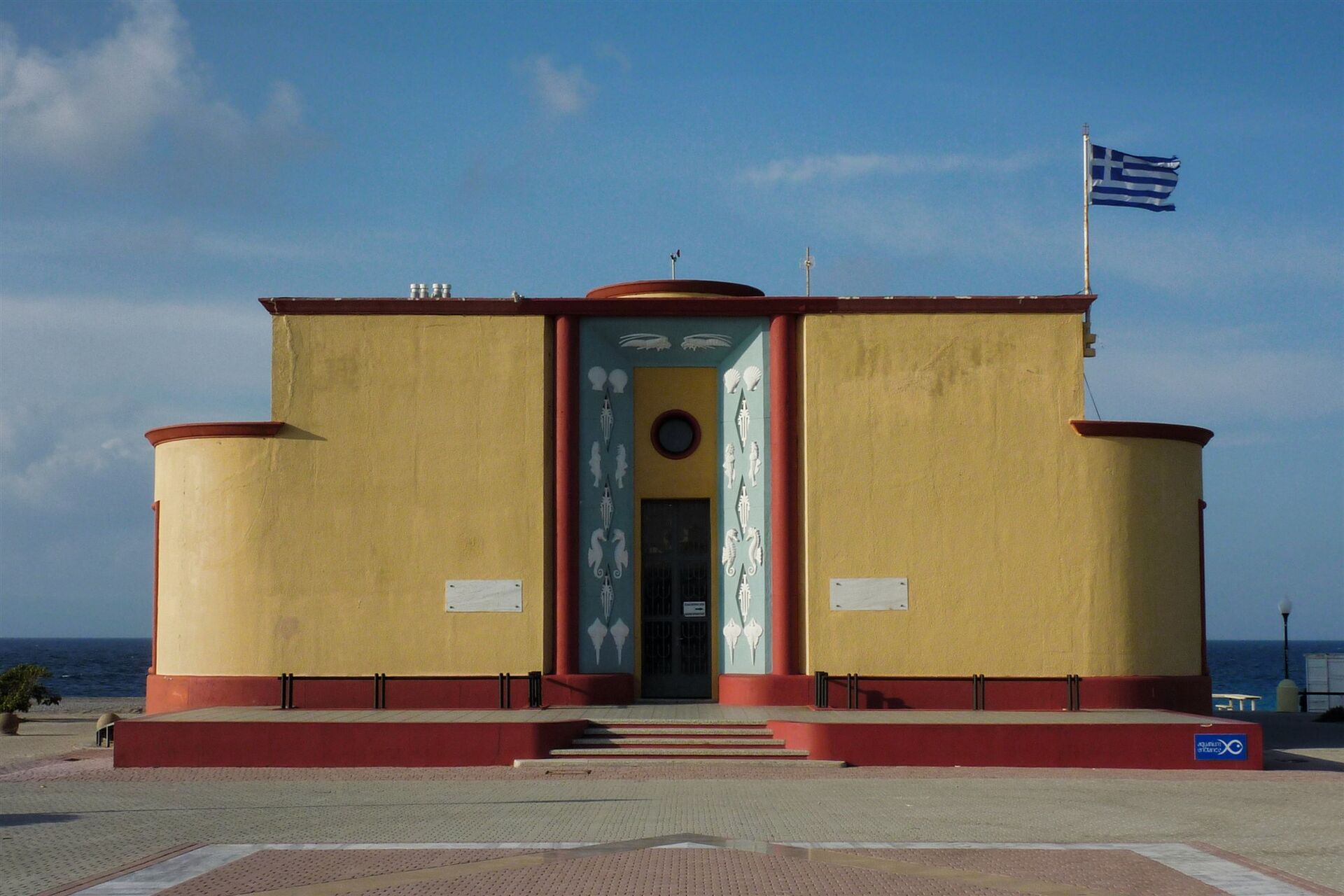An der nördlichen Spitze von Rhodos erreichen wir das (04) Aquarium (3 m), 1934 unter italienischer Herrschaft erbaut. Das Aquarium ist in einer unterirdisch geformten Höhle untergebracht, mit Gängen aus porösem Sandgestein und dekoriert mit natürlichen Schalentieren. Wir setzen unsere Wanderung am Stadtstrand fort und gehen noch vorbei am Kreisverkehr mit den Statuen (Diagoras von Rhodos auf den Schultern von Damagetos und Akousilaos), bis wir nach 400 weiteren Metern direkt hinter dem Hotel Belvedere S.A. in die Straße biegen und bei der nächsten Gelegenheit, ca. 200 m, scharf rechts die Sackgasse hineingehen. Die Straße endet vor einem Anwesen, wo wir links auf dem Pfad bergauf gehen.