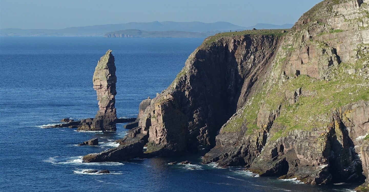 An einer Landspitze befindet sich ein 02 Aussichtspunkt (72 m) mit einem faszinierenden Blick entlang der Steilküste, an deren Ende der Old Man of Stoer auszumachen ist.