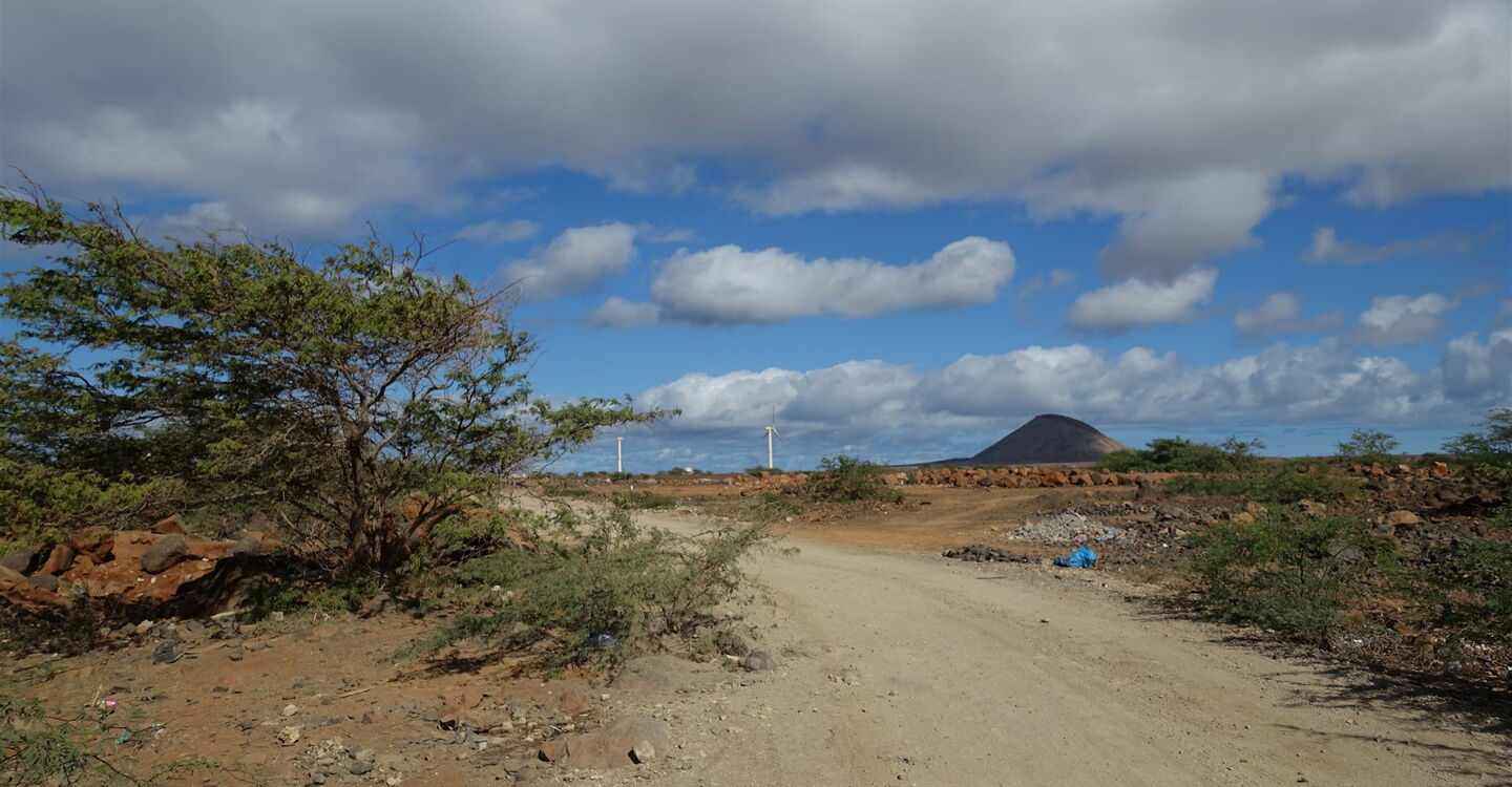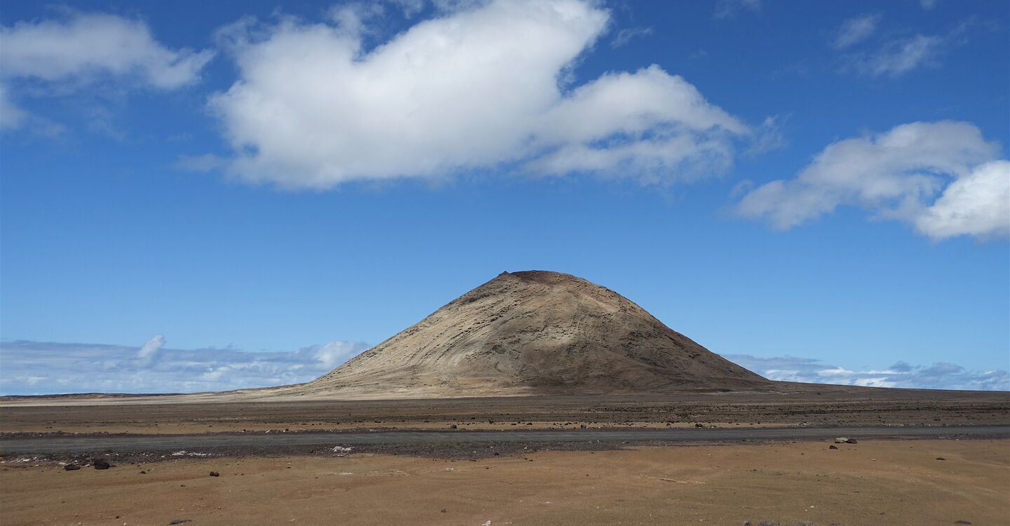 Entlang der Westküste von Sal, mit seinen einzigartigen geologischen Besonderheiten, führt die Wanderung zu einer der interessantesten Sehenswürdigkeiten der Insel. Im Meeresarm von Buracona, deren Felsen aus Basalt sind, befindet sich das Olho Azul. Bei perfekten Bedingungen reflektiert der Lichteinfall des Sonnenlichts, am Meeresgrund der Bucht, in Form eines riesigen blauen Auges. Zu den idealen Voraussetzungen zählen: Mäßiger Wellengang, wenn man um die Mittagszeit an Ort und Stelle ist und die Sonne genügend hoch am Himmel steht. Grüne Algen, die sich angesiedelt haben, und das blaue Auge, stehen im Kontrast zur umliegenden schwarzen Vulkanlandschaft. Auf dem Rückweg marschieren wir durch die karge Savanne, vorbei am Fuße des 269 m hohen Vulkan Monte Leste bis zur Inselhauptstadt Espargos.