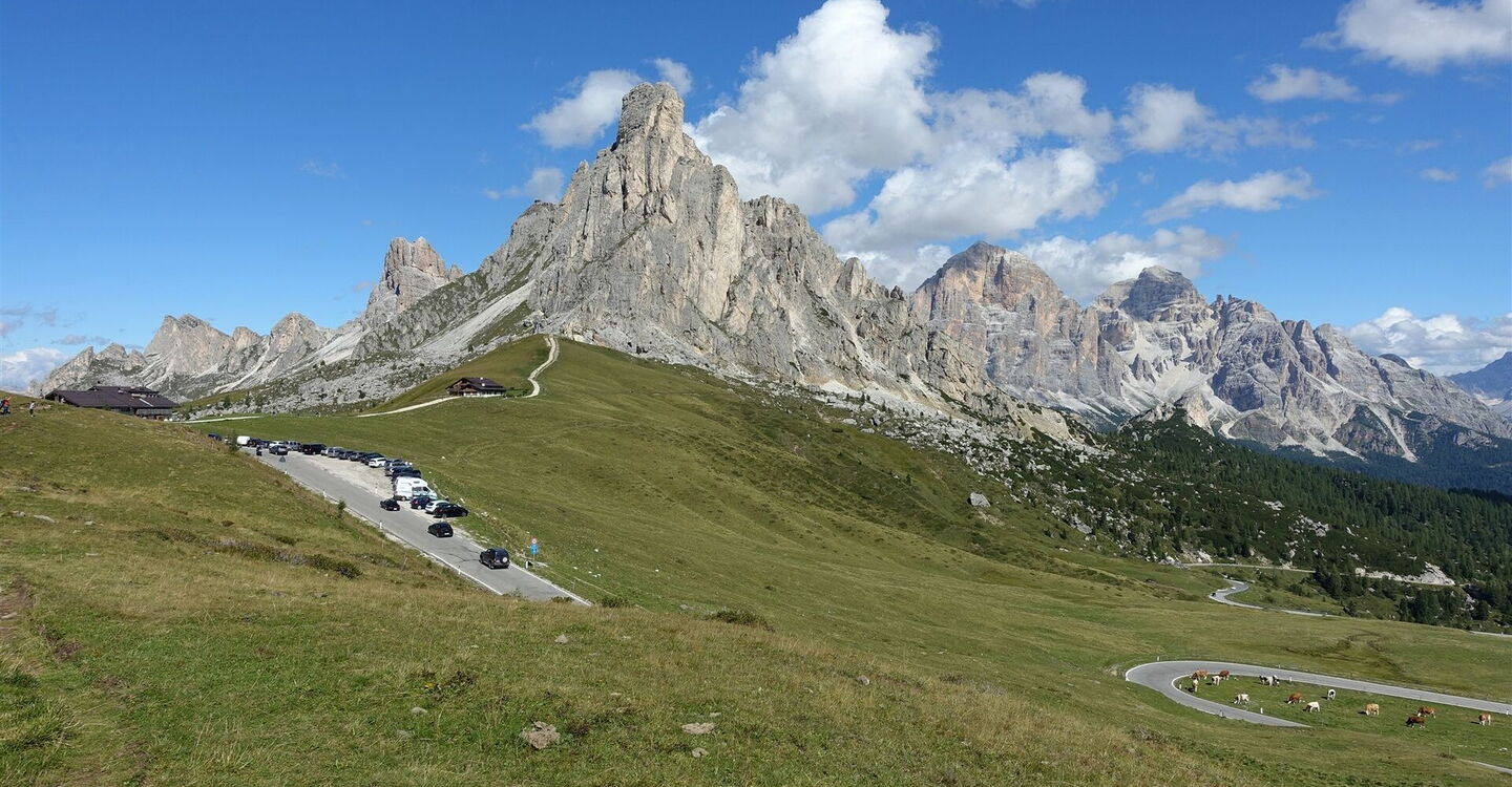 Unterhalb der kleinen Kapelle am 01 Passo di Giau (2.236 m) wandern wir in südöstlicher Richtung auf dem Wanderweg 467 Richtung Passo Staulanza/Wanderweg 436 Richtung Forcella di Giau. Schnell ist die Forcella di Zonia (2.229 m) erreicht, wo sich weitere Wegweiser befinden. Der nachfolgende Pfad führt durch steile Bergwiesen bis zur Forcella de Col Piombin (2.239 m). Von nun an geht es leicht bergab, durch das Reich der Murmeltiere, bis zu einer weiteren Wegkreuzung.
