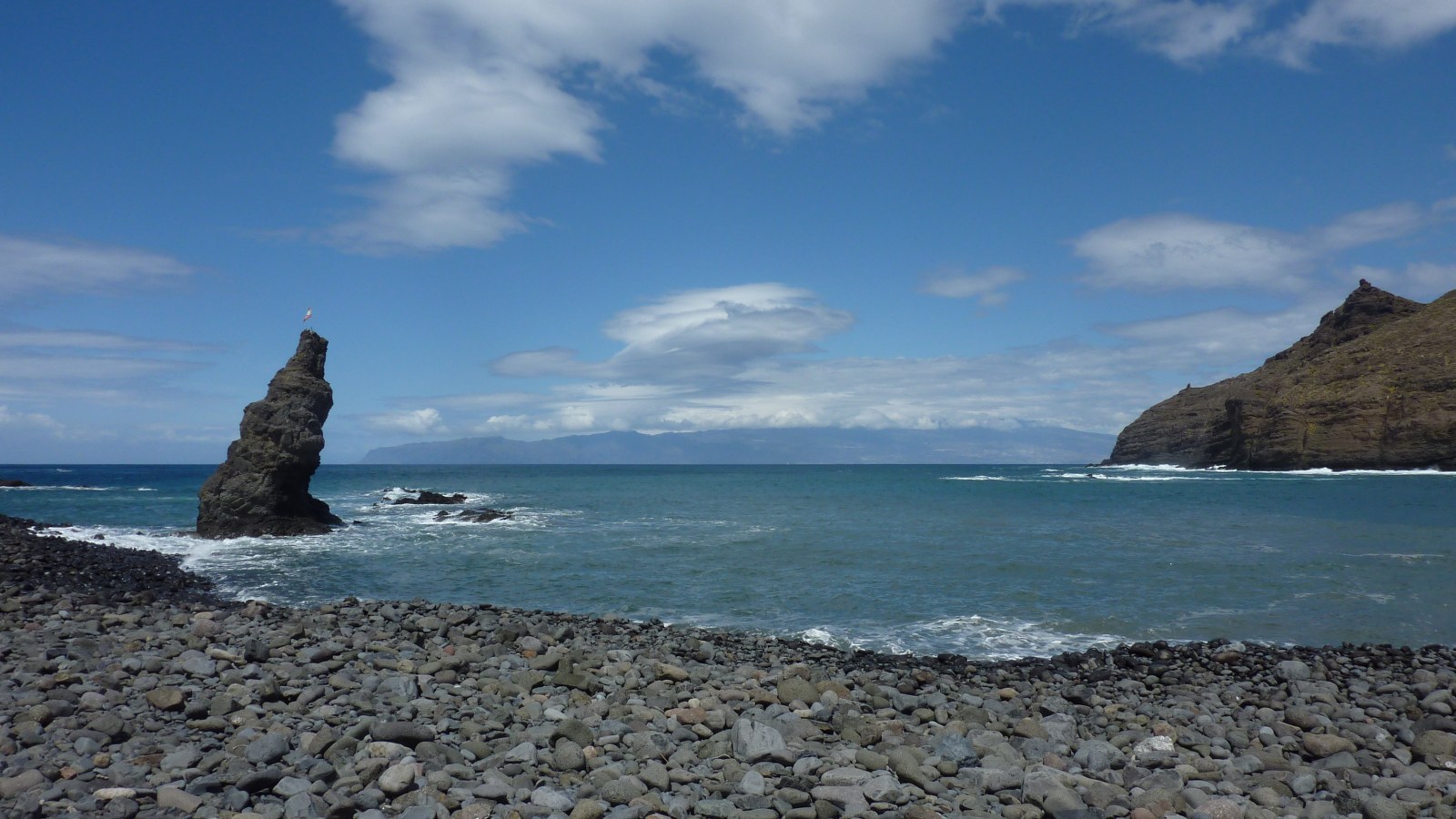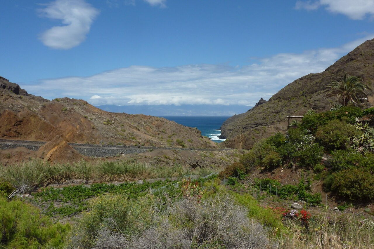 Dieser Strandabschnitt am Playa de La Caleta war eine erste natürliche Anlegestelle für die An- und Abreise von Menschen der Gemeinde Hermigua. Die Schiffe ankerten in der Nähe der Bucht, Fracht und Passagiere wurden mit kleinen Beibooten an den Strand gebracht. Vom (01) Start und Ziel am Playa Caleta (30 m) gehen wir auf der Asphaltstraße, bis wir nach 720 m auf einen kleinen Parkplatz treffen.