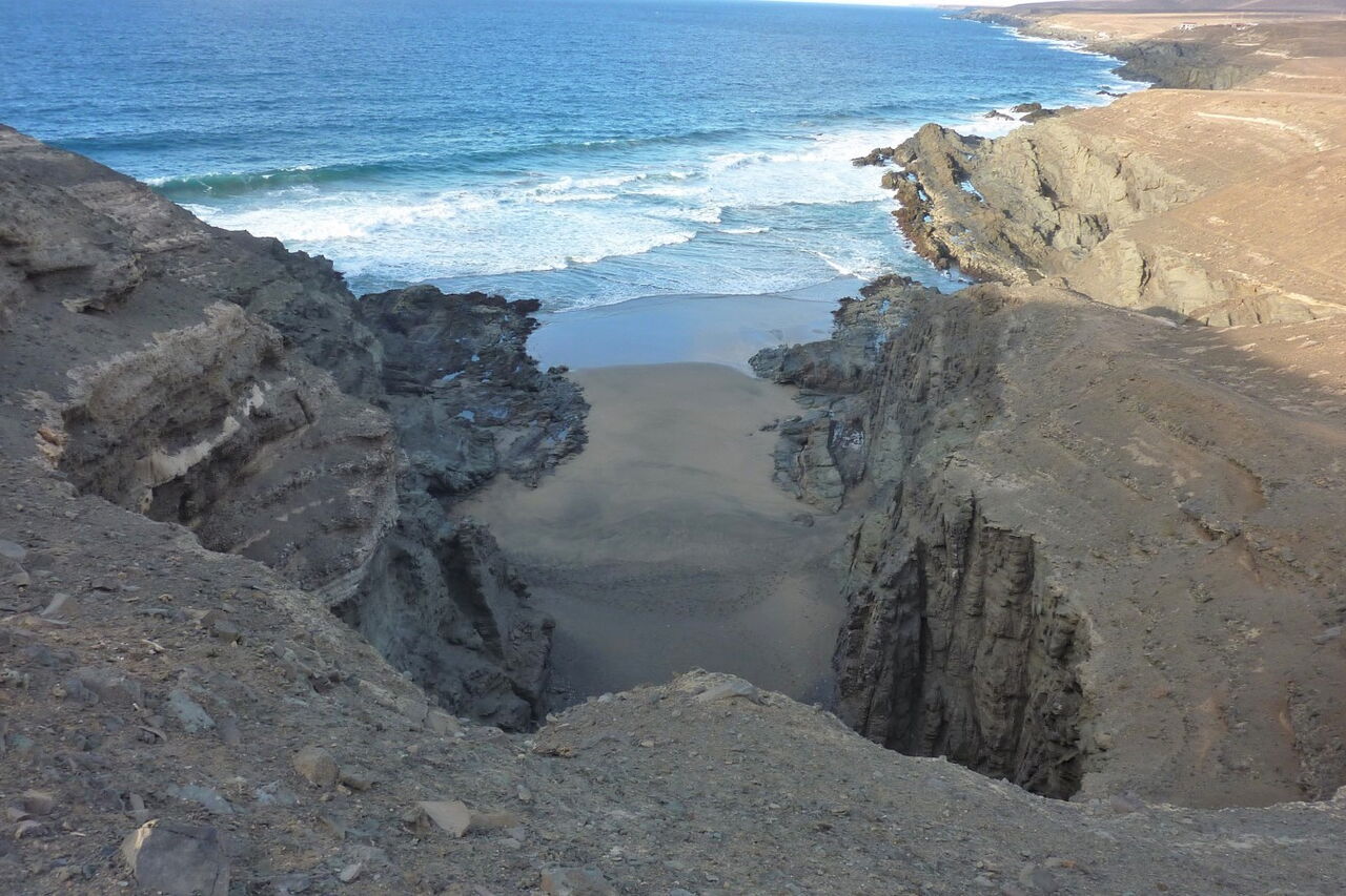 Der menschenleere, 40 m lange und 10 m breite feine Sandstrand liegt im Norden von Fuerteventura, in der Nähe der Ortschaft Llanos de la Concepción. ǀ Der Strand ist schwer erreichbar. Zugang: Auto und Wanderung ǀ Baden ist nicht möglich. ǀ Verschiedenes: romantischer, sauberer Strand mit sauberem Wasser, viel Schatten, mit dem Buggy erreichbar bis an den Rand der Klippe, FKK möglich, Hunde nicht erlaubt ǀ Toiletten, Duschen, Sonnenstühle und Sonnenschirme sind nicht vorhanden ǀ Aktivitäten: Abenteuer ǀ Tipp: Planen Sie mithilfe der Webseite Gezeitenfisch einen Tag mit Niedrigwasser ein, um den Strandabschnitt nutzen zu können. |