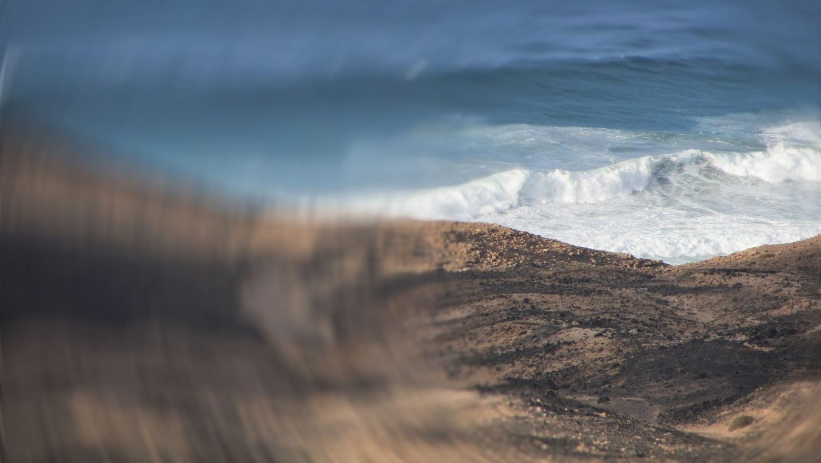 Mittig auf dem sandigen Bergrücken – zwischen zwei großen Barrancos – geht es weitere 550 m seicht bergab. Wir treffen auf den Ursprung eines kleinen Barrancos, dem wir nun ca. 200 m folgen, bis wir am oberen Rand eines Wasserfalls angekommen sind. In einem halbrunden Kreis gehen wir um diesen Wasserfall rechts herum, bis wir auf ein kleines Steinmännchen treffen und nun 50 m in das Trockenflussbett heruntersteigen. Auf Platten aus losem Sandgestein ist der Abstieg rutschig. Auf dem Weg zum Strand wird noch ein kleiner Wasserfall rechts umlaufen, bevor wir den (05) Playa de Barlovento (10 m) erreicht haben. Der wildromantische Strand lädt zum Verweilen und Genießen ein. Wir gehen auf dem gleichen Weg wieder zurück.