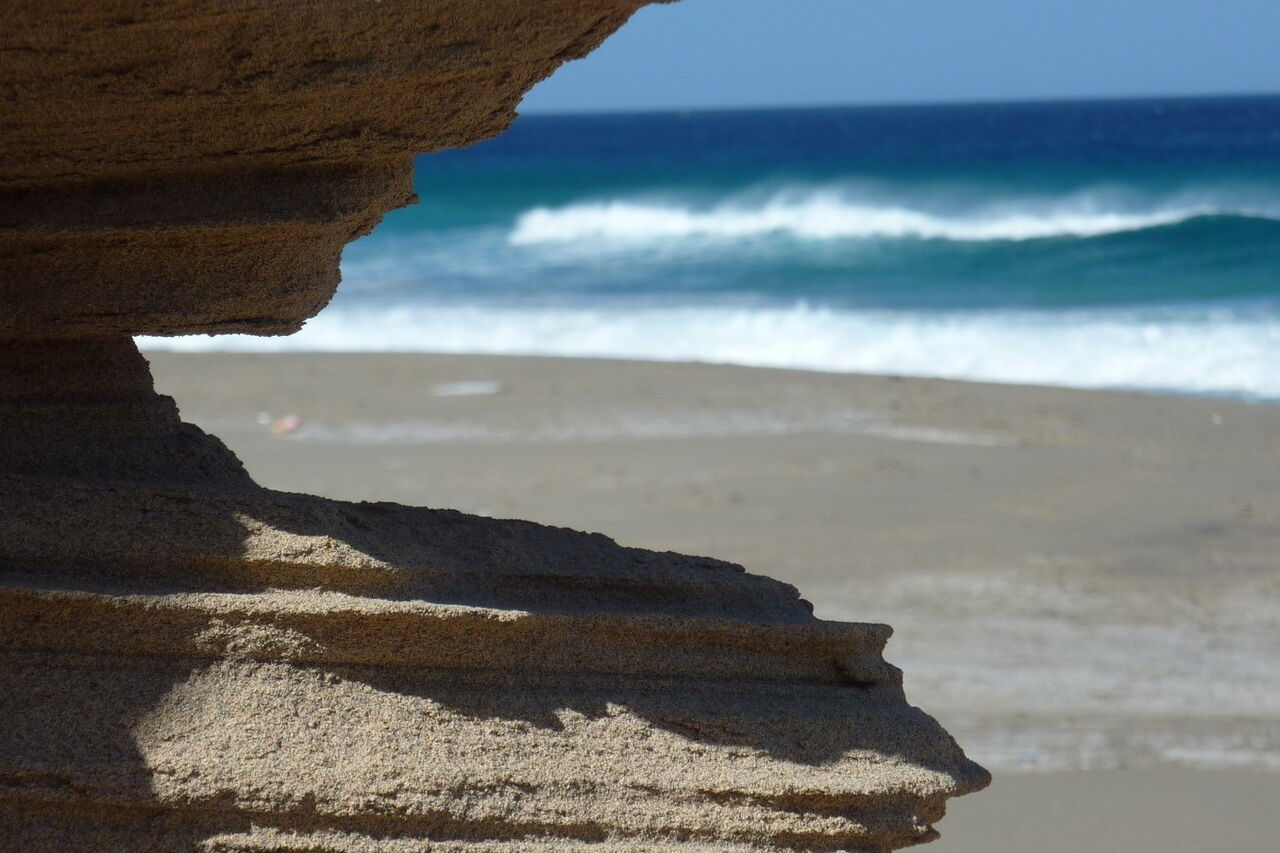 Am Strand Playa de Cofete angekommen, gehen wir links in Richtung des Felsens Roque del Moro, den man schon gut aus der Ferne erkennen kann.