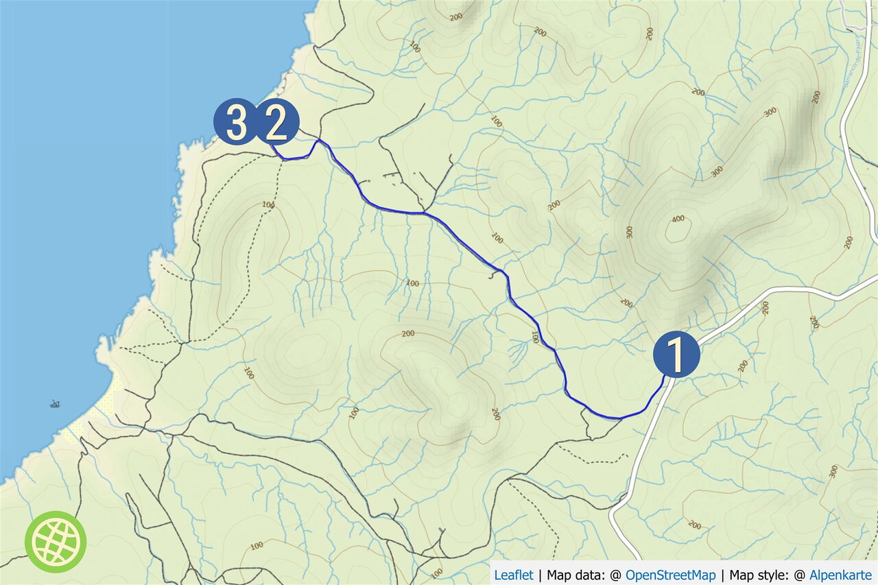 Angekommen am Strand, gibt es links mit Blickrichtung zum Meer eine weitere schöne Bucht, die man bei Ebbe ohne Probleme, aber bei Flut nur mit ein bisschen Klettern erreichen kann.