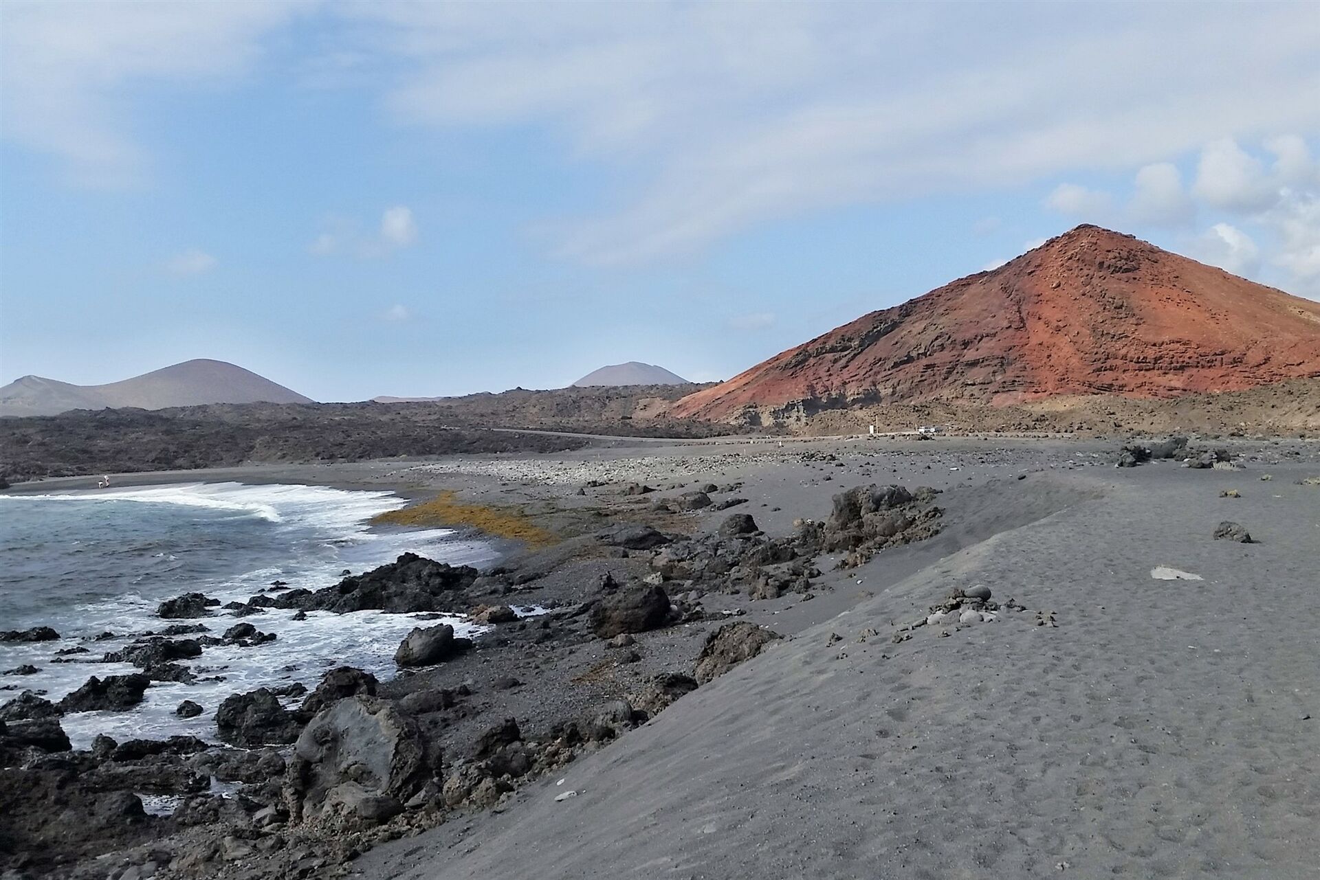 Einfacher Spaziergang entlang eines schwarzen Kieselstrandes und vorbei an einer Kraterlagune. Untergrund: schwarzer Kies und schwarzer Lavasand. Keine besondere Empfehlung an die Ausrüstung. Einkehr: Die nächste Einkehrmöglichkeit gibt es in dem Fischerdorf El Golfo. Den Strand kann man zu jeder Jahreszeit besuchen. Tipp: Besuchen Sie den etwas südlich gelegenen Küstenstreifen Los Hervideros zwischen El Golfo und den Salinas de Janubio. Dort treffen erkaltete Lavaströme auf den Atlantischen Ozean.