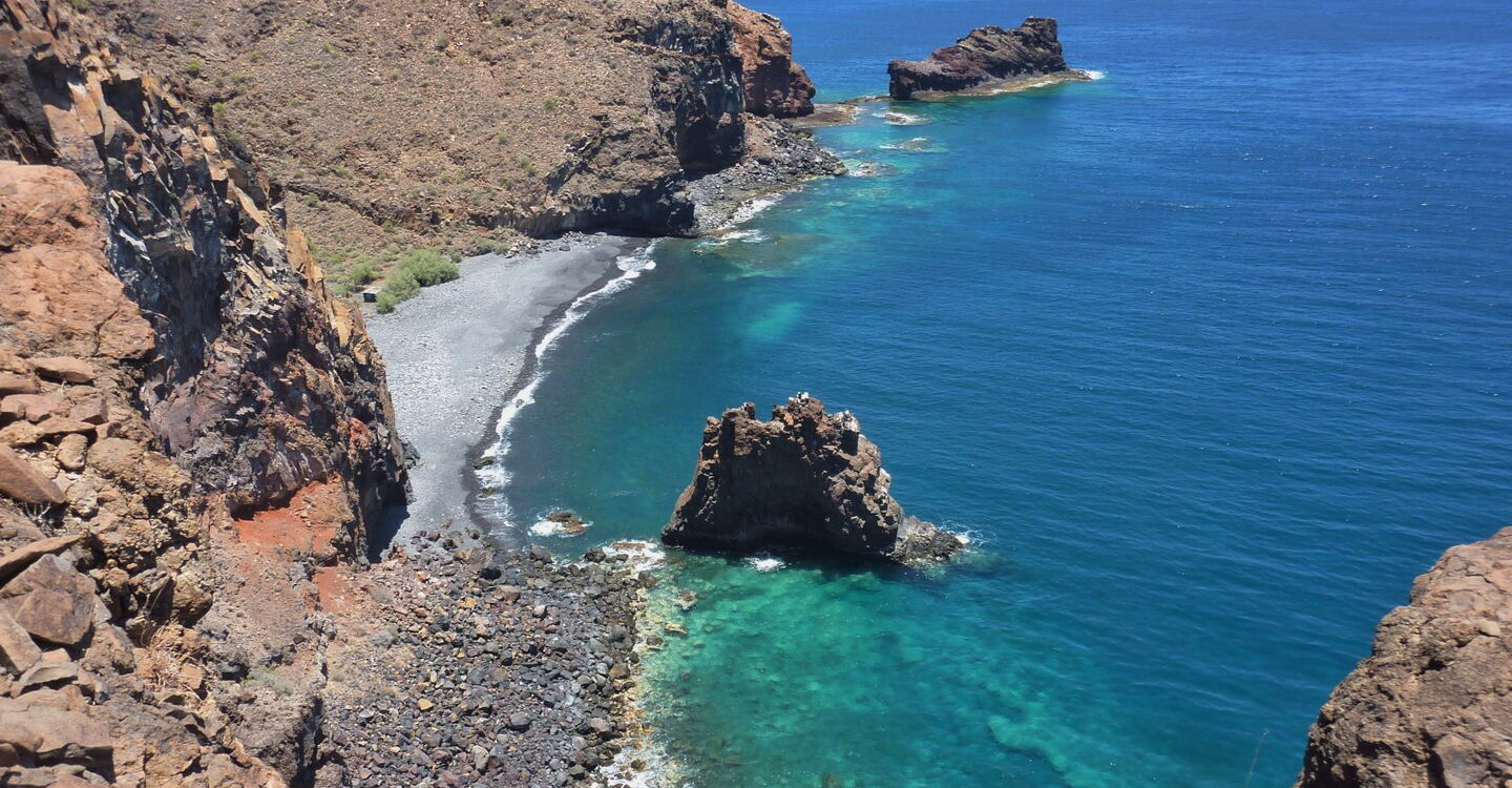 Der Küstenabschnitt zwischen dem Barranco del Cabrito und dem Playa de Santiago ist nahezu unbewohnt und verfügt über verträumte Buchten, die auf dieser Wanderung entdeckt werden. Die geringen Höhenmeter sowie die kurze Wegstrecke sollten nicht darüber hinwegtäuschen, dass es diese Tour in sich hat. Die Wanderung ist geprägt von ständigen An- und Abstiegen im freien Gelände und auf gerölligem Untergrund. Die Tour ist perfekt für den Naturliebhaber, der die grandiose Landschaft im sonnigen Süden von La Gomera mit ihren versteckten Buchten genießen möchte. Auf dieser Wanderung entfliehen Sie dem Alltag und jeglicher touristischer Infrastruktur.