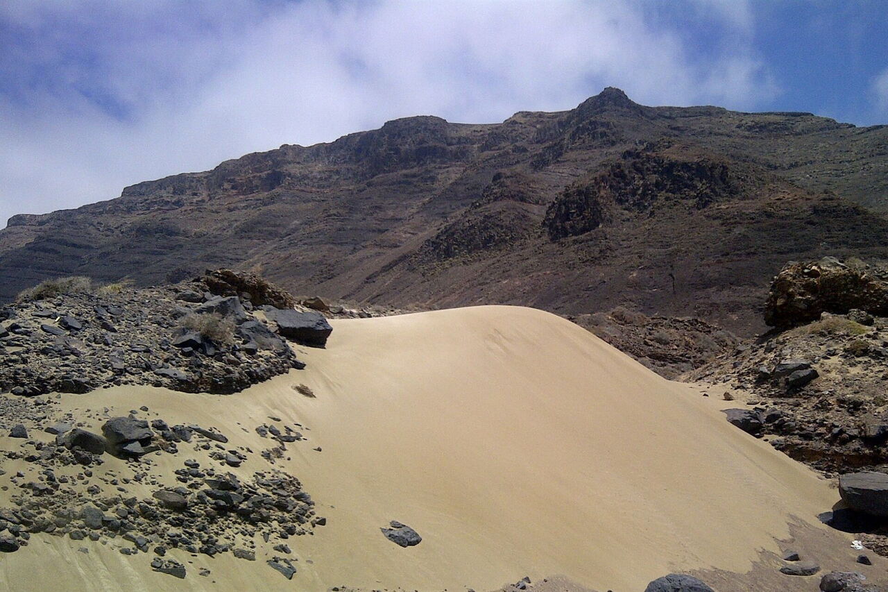 Wehen mal wieder die Passatwinde, so geht man vom südlichen Ende des Strandes 05 Playa del Risco 1 m 250 m in westliche Richtung, wo man auf vereinzelt stehende Steinburgen trifft. Auf dem Rückweg gehen wir zunächst weglos in südöstlicher Richtung direkt auf das Famara Gebirge zu, um dann auf dem Wanderweg zum Ausgangspunkt zurückzugelangen.