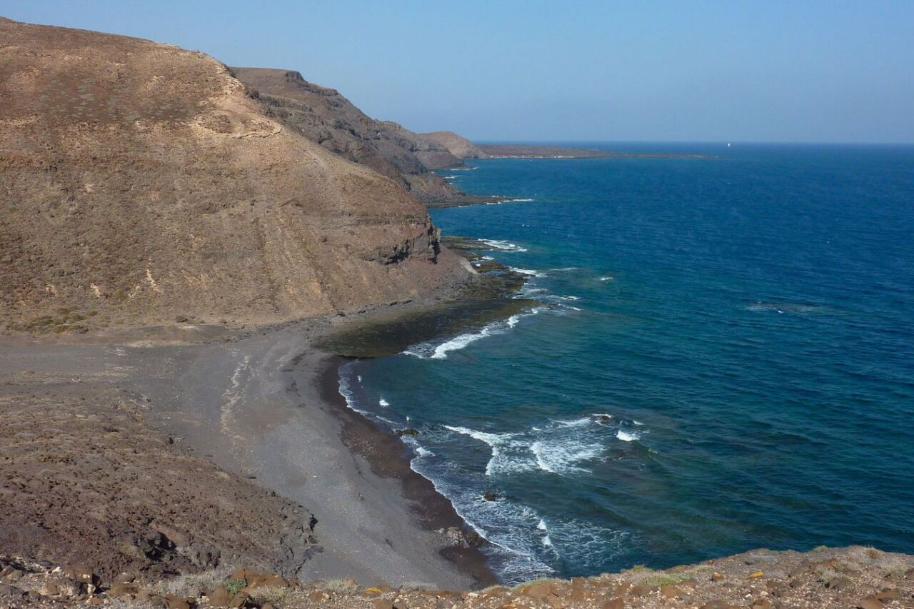 Diese Wanderung führt durch den 1934 gegründeten Naturpark Cuchillos de Vigan. Die 6.040 ha große Region ist gekennzeichnet durch lange, quer zur Küste verlaufende Täler, die das Ergebnis fortlaufender Erosion sind. So führen der Hin- und Rückweg durch zwei dieser beeindruckenden Täler. Im Schutzgebiet sind einheimische Pflanzen wie der Meerkohl und Tiere wie der Schmutzgeier beheimatet. Das Kernstück der Wanderung ist ein sehr selten begangener und wüster Küstenpfad. Vorbei geht es an drei traumhaften schwarzen Sandbuchten, die definitiv zum erfrischenden Bad und zum Verweilen einladen.