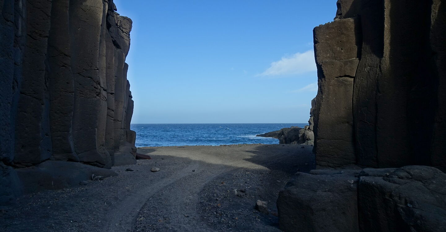 Dort, wo sich die Wasserläufe zweier riesiger Trockenflüsse zu einem Strom vereinen und sich dann durch ein 7 m schmales Nadelöhr aus mächtigen Granitfelsen zwängen, entdecken wir einen versteckten Traumstrand. Jahrtausende wurden Sedimente durch den Schluchtauslauf mitgeführt, es bildete sich dieser 500 m lange und 50-100 m breite, schwarzsandige Strandabschnitt. Sehr sehenswert ist ein Felsdurchbruch, durch den Wellen auf den Strand zurollen.