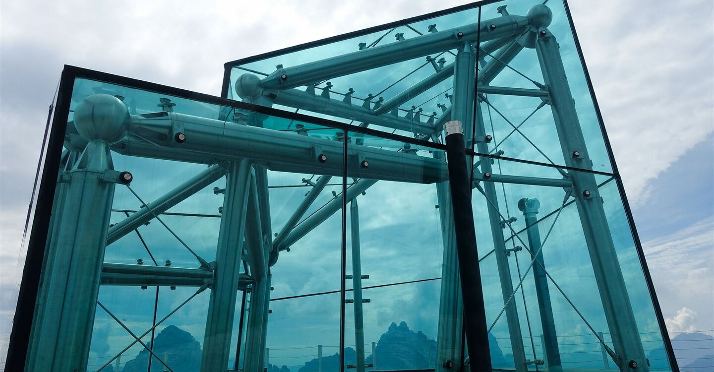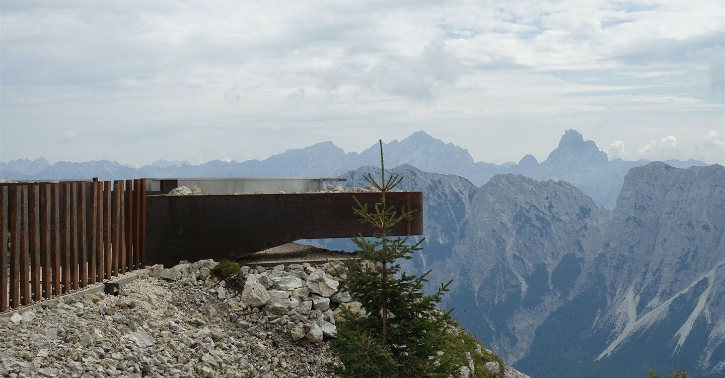 Vom Gipfel aus sehen wir bereits in westlicher Richtung das gläserne Dach des 03 MMM Dolomites (2.164 m). Dieses Museum befindet sich in einem alten Fort, erbaut zwischen 1912 und 1914. Es behandelt das Thema "Fels – die Erschließungsgeschichte der Dolomiten". Den Besucher erwartet eine große Galerie einmaliger Bilder aus den Dolomiten – von der Romantik bis heute. Nach dem Besuch gehen wir auf der Piste bergab. Wieder beim Rifugio Dolomites angekommen, gehen wir scharf rechts.