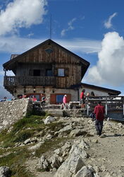 Vom Sessellift und dem Rifugio Averau an der Forcella Nuvolau steigen wir in östlicher Richtung auf dem Wanderweg 439 gemächlich über einen Bergkamm bis zum extrem aussichtsreichen Gipfel des Monte Nuvolau auf. Wie ein Adlernest liegt hier das 05 Rifugio Nuvolau (2.575 m).