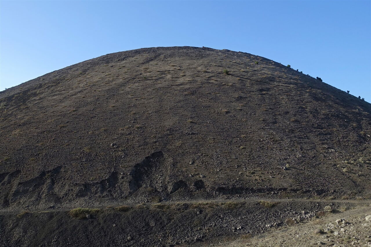 Nach einer scharfen Linkskehre kommt man an den Sendemasten vorbei und erreicht bei einer Messsäule den höchsten Punkt der (03) Montana Chamuscada (1142 m). Hier scheint vor ca. 2500 Jahren der letzte Vulkanausbruch auf El Hierro stattgefunden zu haben. Zu Füßen liegen uns das idyllisch gelegene Bergdorf San Andres und die dahinter liegende Nisdafe-Hochebene, auch die Kanareninsel La Palma kann man in der Ferne ausmachen. Parallel zum Hinweg gehen wir nun auf dem Kraterrand bergab, bis wir an die Rechtskehre vom Aufstieg gelangen. Dort gehen wir nun auf einem weiteren Kraterrand geradeaus, direkt auf einen mächtigen Zedernwacholderbaum zu, der in der Caldera eines Vulkans steht.