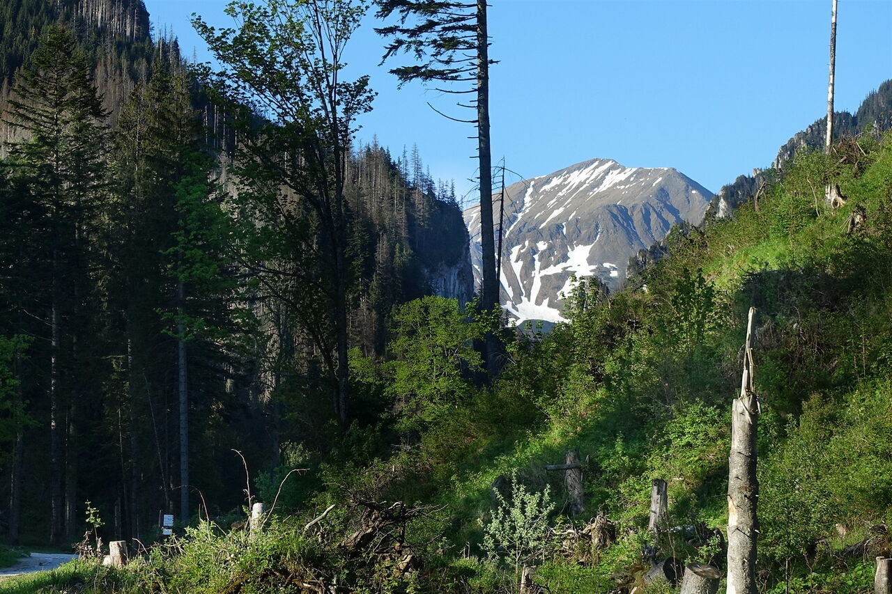 Wir steigen ab durch einen der besterhaltenen Wälder in der polnischen Tatra. Zweimal queren wir auf Brücken den 03 Gebirgsfluss Roztoka (1314 m).