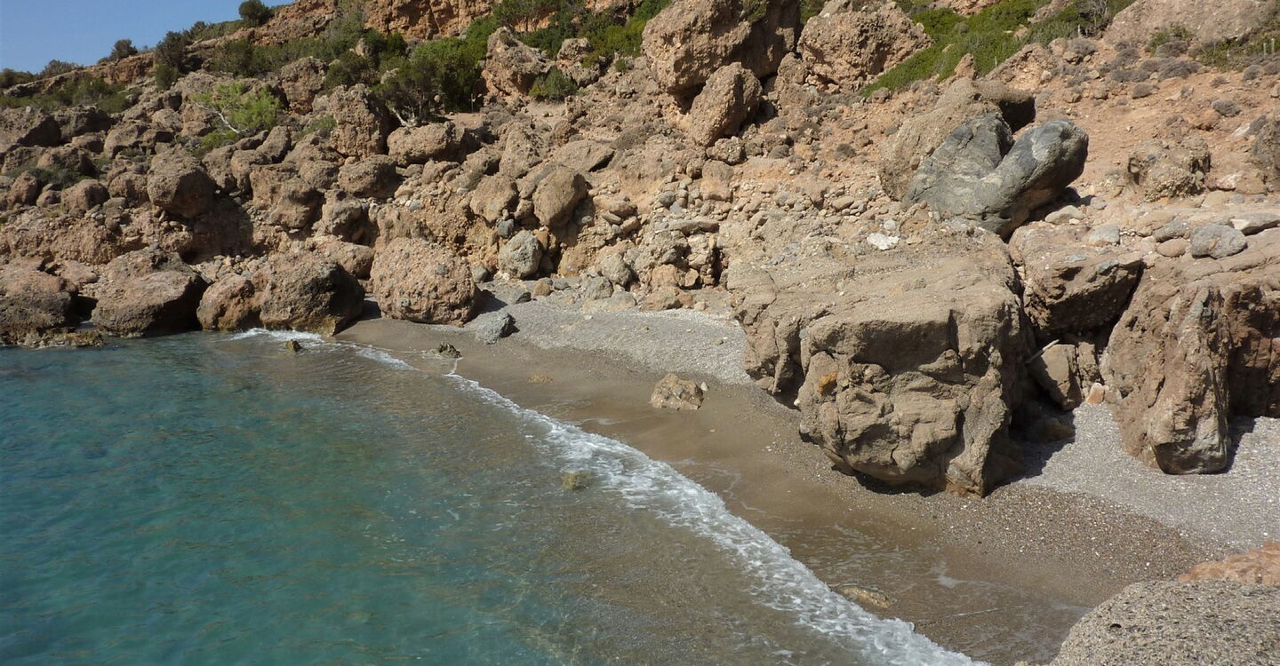 Charakter: Einfache Orientierung auf den Wegen und Pfaden bei dieser leichten Küstenwanderung. Art des Weges: 15 % Asphaltstraße, 35 % Schotterpiste und 50 % Pfad. Zusatzausrüstung: keine. Einkehrmöglichkeiten: Bei der antiken Stadt Lissos gibt es eine Quelle. Auf eine Taverne trifft man zwischen dem Gyaniskari- und dem Dyaliskari-Strand. Beste Wanderzeit: ganzjährig. Hinweis: Camping ist erlaubt an den Stränden Gyaniskari, Dyaliskari und Anhydroi. Kurz vor Paleochora, am Pebble Beach, befindet sich der Campingplatz Paleochora. | 73001 Paleochora | http://campingpaleochora.eu.ki/ | +302823041144 | GPS-Pkw: 35.237488 23.692721 |