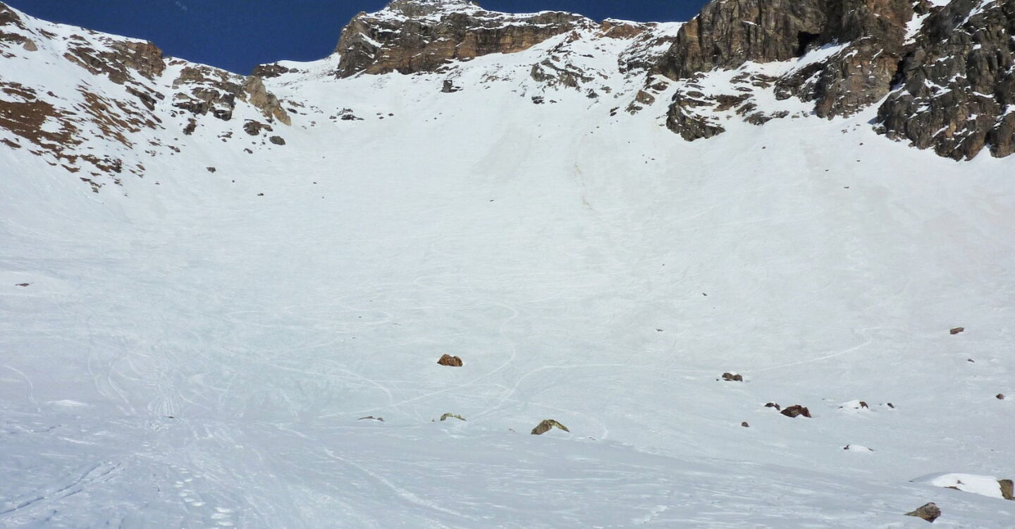 Der Einstieg in die Scharte und auch in den Canyon erfordert eine gute Orientierung, am besten mithilfe des GPS-Tracks. Die Abfahrt führt über einen Westhang. Folgende Ausrüstung wird empfohlen: Produkte für alpine Sicherheit im Schnee, Freerideski und Skitourenhelm. Es gibt verschiedene Restaurants zur Einkehr im Skigebiet. Beste Jahreszeit: Januar bis April. Uns erwarten kurze Stücke mit bis zu 40° Hangneigung.