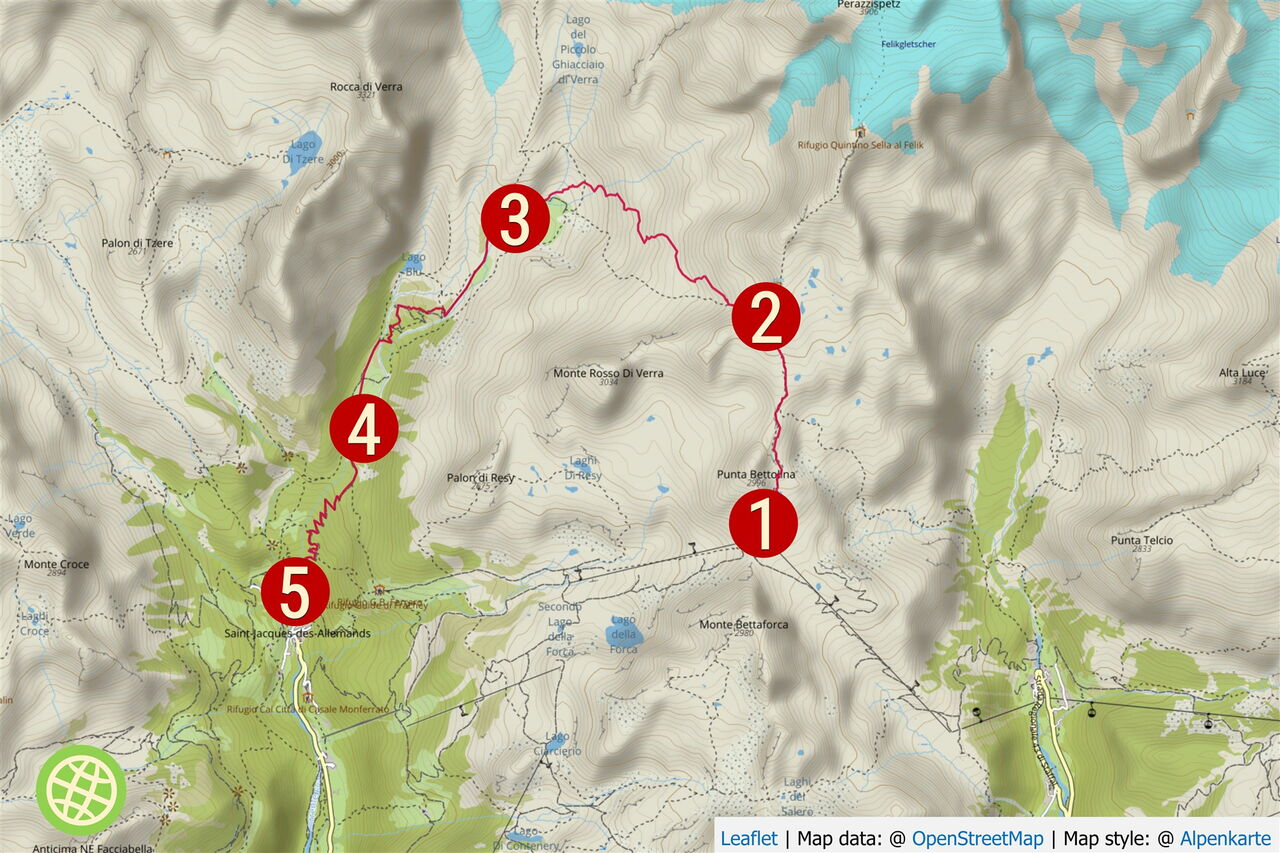 Geokoordinaten zum Start 45.8536 7.935383. Sie führen Dich nach Alagna, wo Du das Auto parkst und mit dem Lift weiterfährst.