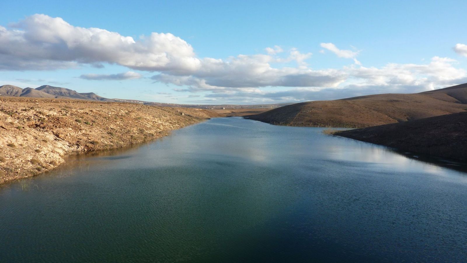 Die andauernde Wasserknappheit war schon immer eines der größten Probleme auf Fuerteventura. Überall auf der Insel sieht man deshalb kleine Staustufen. Diese Wanderung führt um den einzigen nicht verlandeten Stausee auf Fuerteventura. Im ersten Teil steigt der Weg durch die seichten, bei Abendlicht ockergelb erscheinenden Hügelketten an, um dann nach dem höchsten Punkt der Wanderung gemächlich zum Stausee abzufallen. Wir gehen anschließend 600 Meter parallel zum Stausee, bis wir ihn bei seinem südlichsten Zulauf überqueren. Es folgt ein Wegstück durch ein extrem karges Landschaftsbild, bis wir durch eine bewirtschaftete Region wandern und wieder am Ausgangspunkt ankommen.