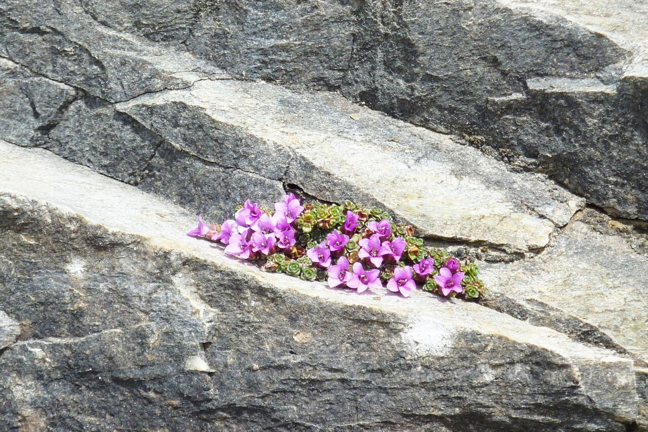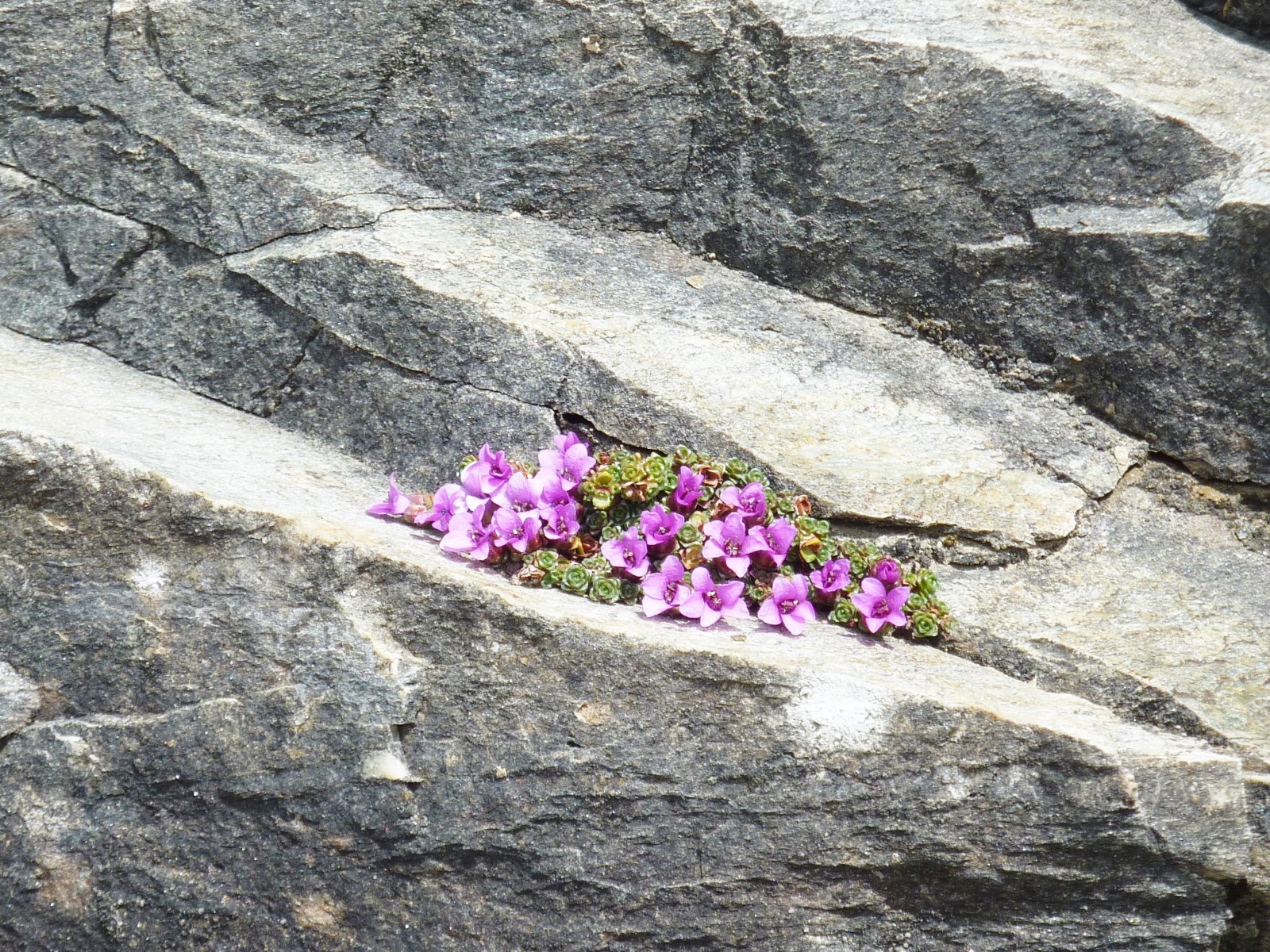 Wir steigen wieder zum Madritschjoch auf. So kommen wir ins Skigebiet zurück. Am Weg finden wir die ersten Frühlingsboten.