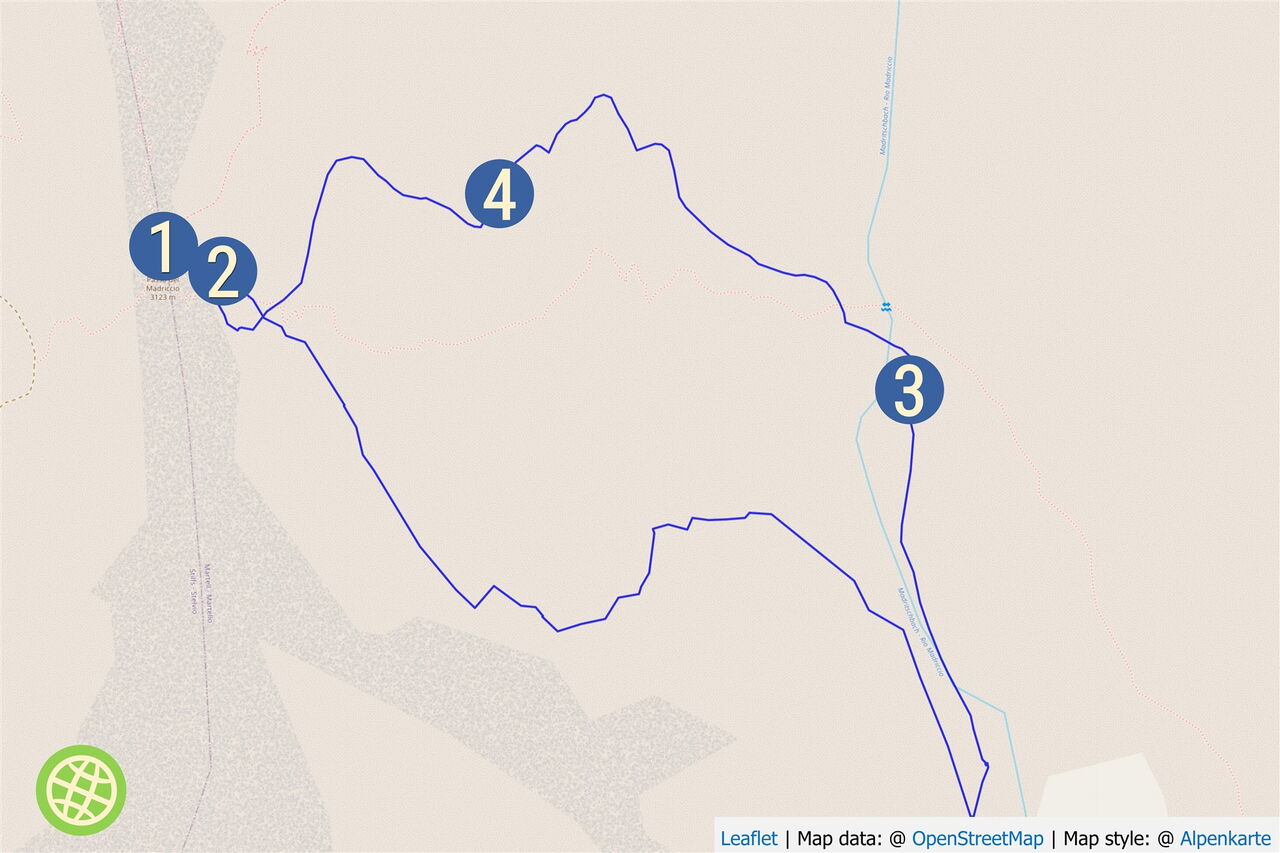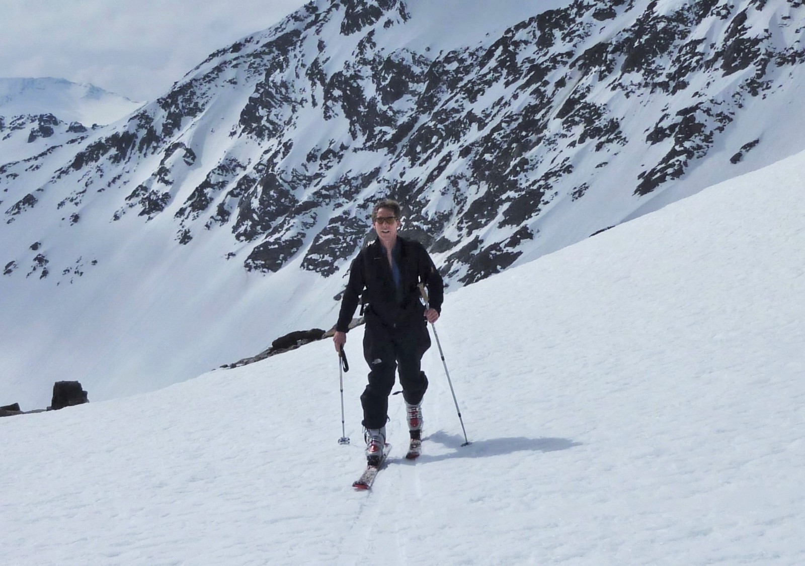 Einfache Orientierung im Tal. Bei schlechter Sicht ist der GPS-Track aber essenziell, um den Rückweg zu finden. Die Abfahrt führt über einen Südosthang. Folgende Ausrüstung wird empfohlen: Produkte für alpine Sicherheit im Schnee, Tourenski und Skitourenhelm. Es gibt keine Einkehr auf der Tour. Beste Jahreszeit: Januar bis April. Uns erwarten kurze Stücke mit bis zu 35° Hangneigung.