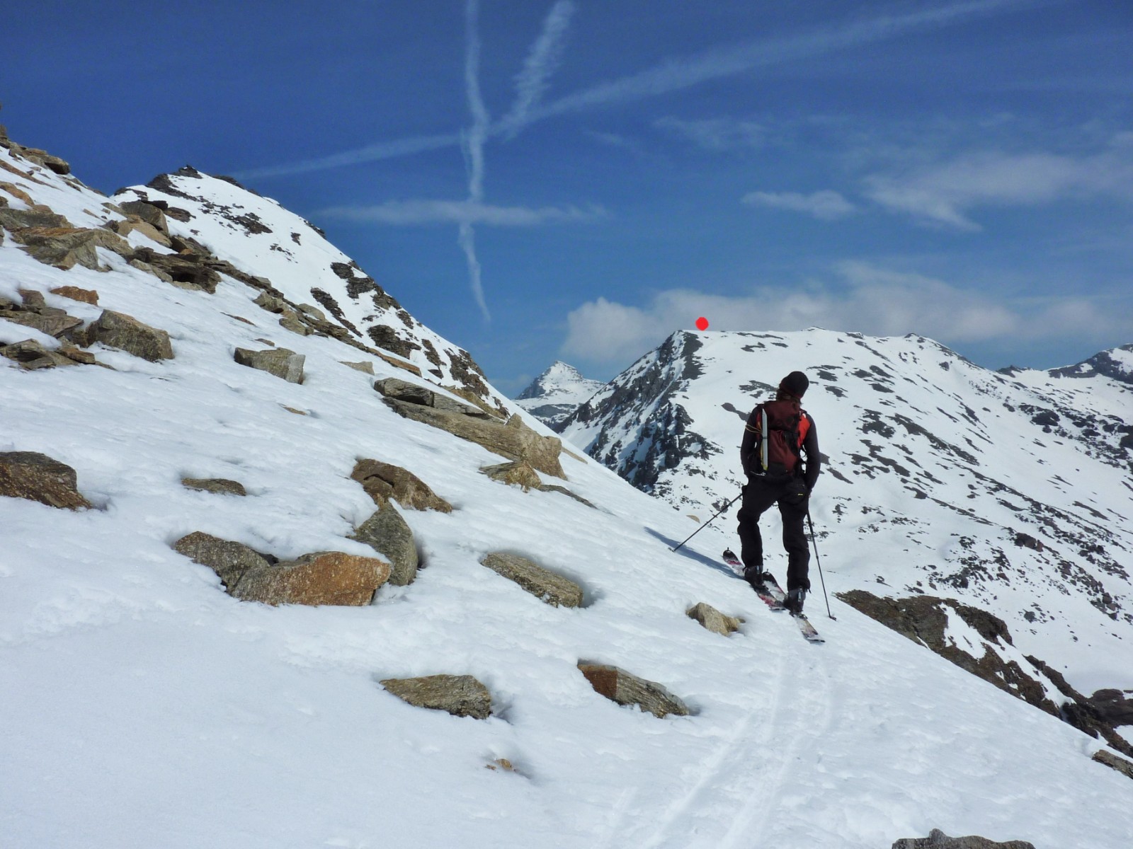 Nun muss man nach links den Hang queren, um kurz aufzusteigen. Man kann auch die Pederspitze auslassen und gleich im Gegenhang die 40 hm zum Pass überwinden, um ins Pedertal zu kommen.