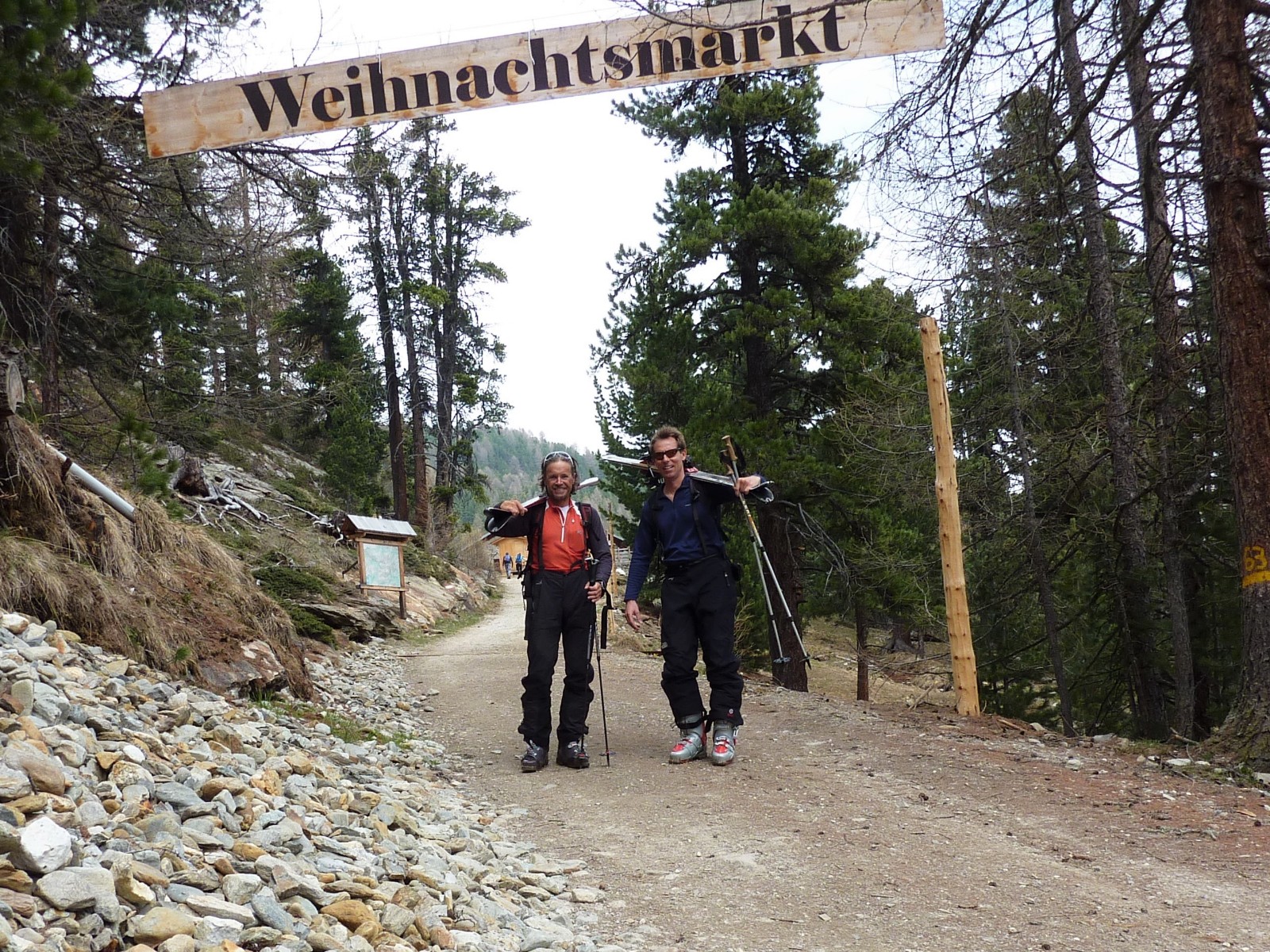 Je nach Schneeverhältnissen folgen 6 km Abfahrt. Wir mussten die letzte Strecke bis zur Enzianhütte zu Fuß gehen. Zurück geht es mit einem Abholer oder dem Taxi Voggler, Tel. mobil (0039) 335 6 00 68 65.