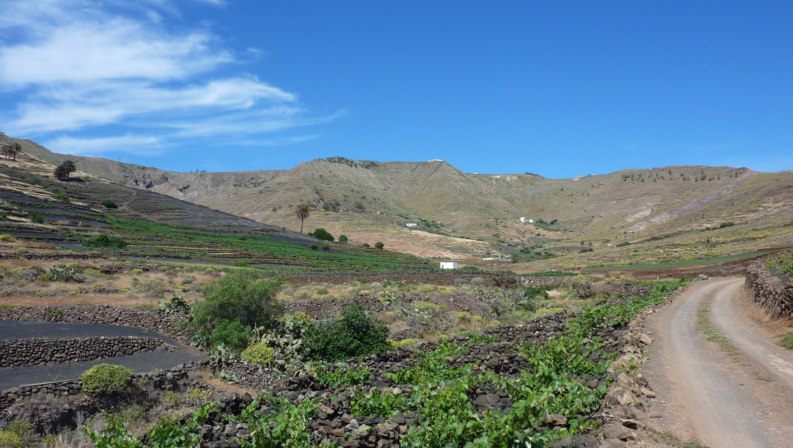 Unsere Tour startet im kleinen Dörfchen Tabayesco nördlich von Arrieta im Norden von Lanzarote. Da sich lediglich eine kleine und unbekannte Teerstraße durch das Tal schlängelt, ist man automatisch weit ab vom Tourismus. Auf dieser landschaftlich sehr beeindruckenden Wanderung durch bewirtschaftete Felder kann man Feigenbäume, Mandelbäume, Mais und Weizen sowie vielen Agaven und Kakteen bestaunen. Auf dem oberen Teil der Tour unterhalb des höchsten Berges der Insel, des Penas del Chache mit 672 m, ergeben sich immer wieder wunderschöne Fernblicke in das Valle de Temisa und auf die komplette Ostküste von Lanzarote.