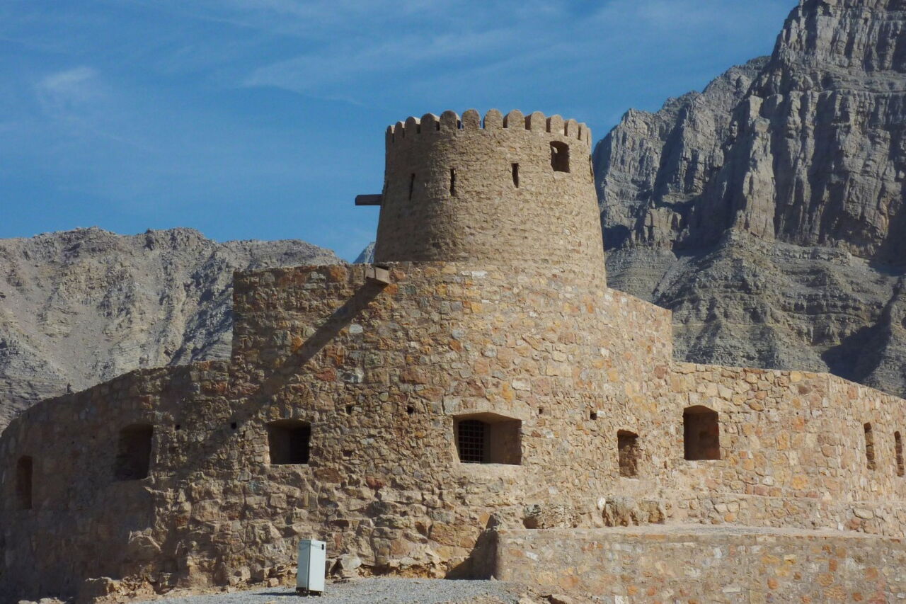 Wir überqueren die Grenze zum Oman und kommen schon bald in den kleinen Ort Bukha. Hier können wir das neuere Fort an der Hauptstraße und das alte Fort Al Qala auf einer Anhöhe erkunden.