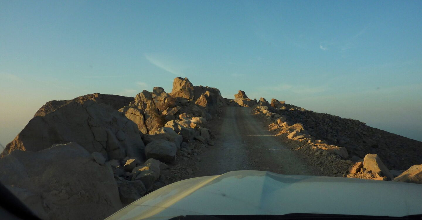 Es ergeben sich traumhafte Blicke ins Hajar-Gebirge und hinunter zur Küstenstraße von Bukha nach Khasab.