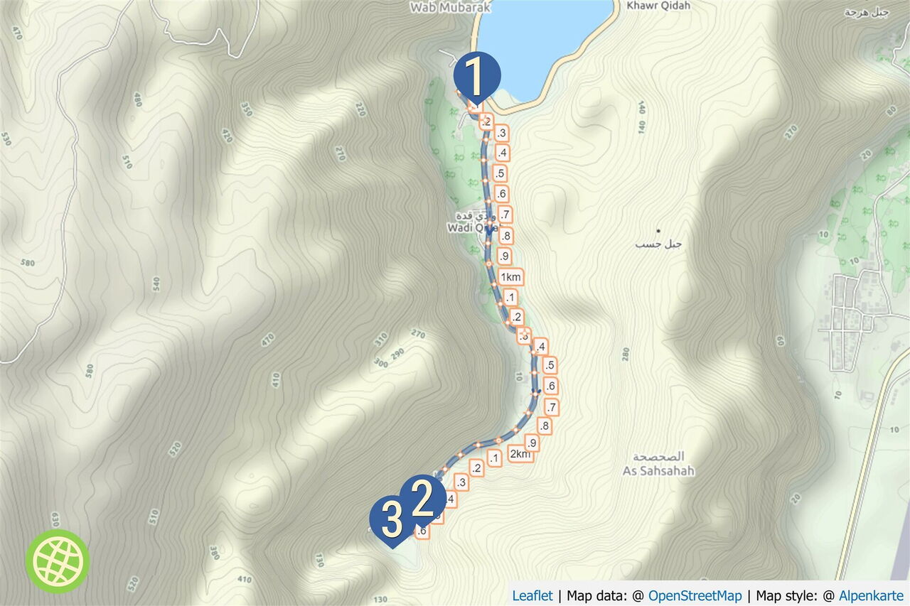 Die Garmin-Navigationsgeräte erlauben die Eingabe der GPS-Koordinaten N26 10.655 E56 13.068. Sie führen dich direkt zum Ort Tawi im Wadi Qadah, das für seine Felszeichnungen bekannt ist.