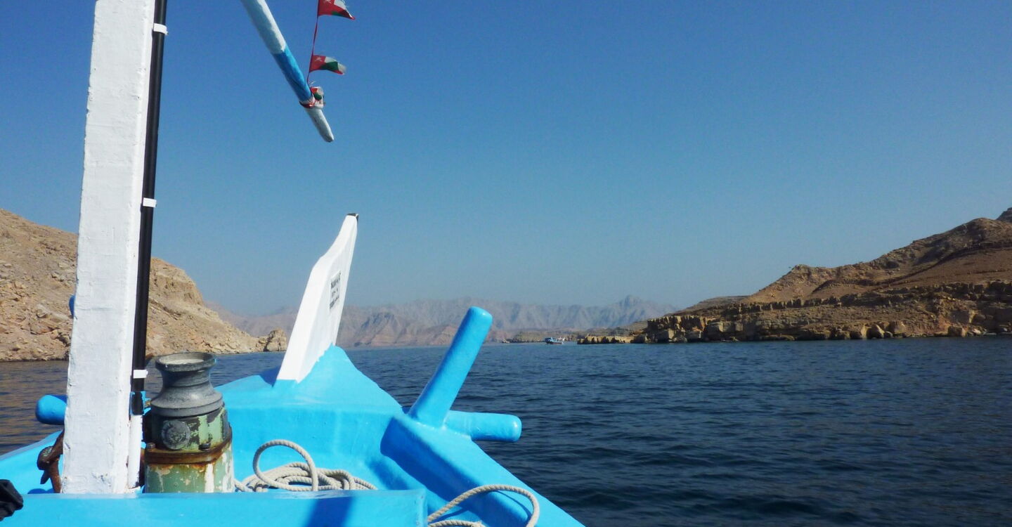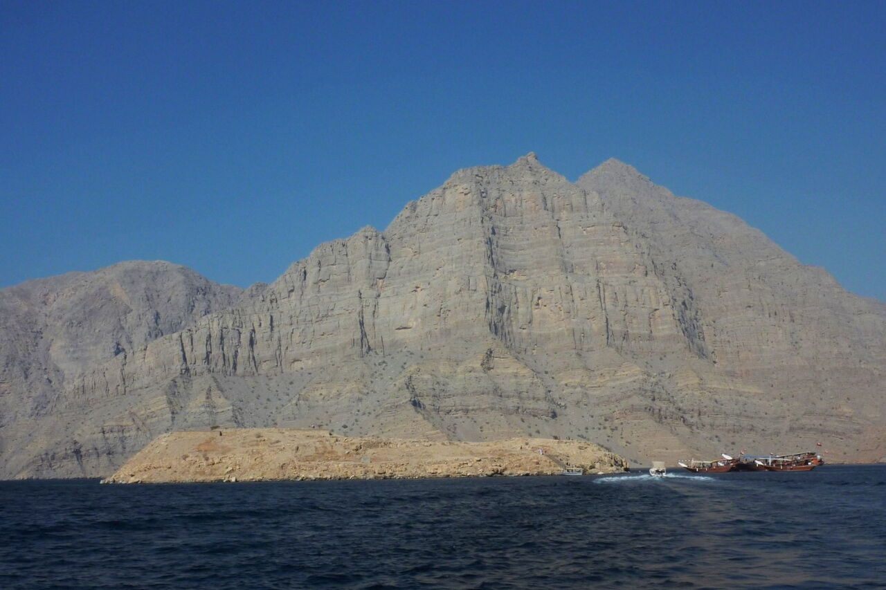 Vom Hafen aus fahren wir erst noch kurz auf der Straße von Hormus. Von hier sind es 65 km zum Iran, bis wir dann in den traumhaft schönen Chaur-asch-Scham-Fjord eintauchen.