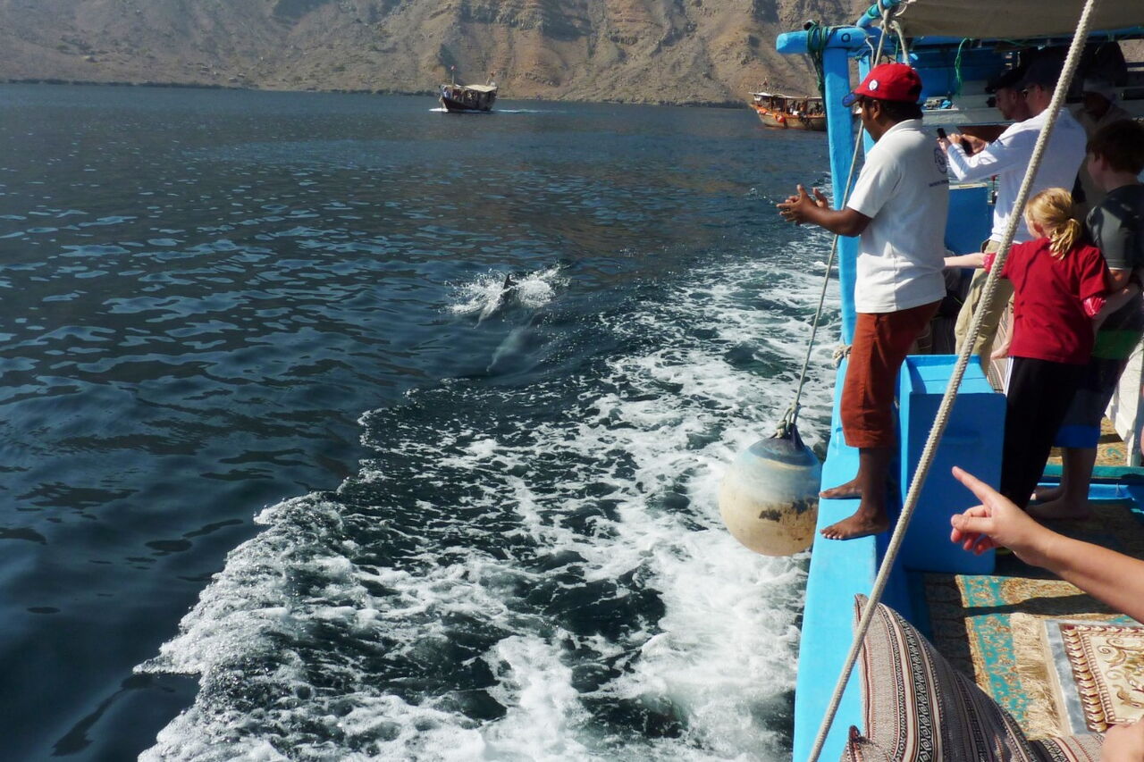 Heute haben wir einen Tag der völligen Entspannung vor uns. Wir fahren mit dem klassischen Schiff der arabischen Welt, der sogenannten Dhow, 25 km durch die Fjorde von Musandam.