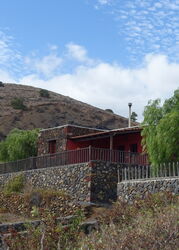 Wir queren mal wieder die Hauptstraße und gehen ein kurzes Stück auf einer Asphaltstraße in Richtung der Vulkane Montana de Prim (rechts) und Montana Restinga (links). Der Camino führt an einem Einsiedlerhof mit kläffenden Hunden vorbei, bevor wir zu einer Dreiwegekreuzung gelangen, an der wir (04) geradeaus (260 m) weiterwandern. Hinter den rechts liegenden Aloe-vera-Feldern gehen wir nicht scharf rechts, sondern auch hier geradeaus weiter.