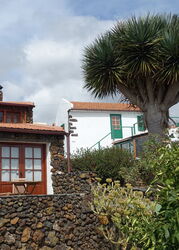 Vom (01) Start und Ziel (823 m) am Busbahnhof wandern wir auf der Anfahrtsstraße zurück, um direkt vor dem Dorfplatz in die Einbahnstraße Calle El Chamorro zu biegen. Bei einem Heiligenschrein gabelt sich die Straße und wir gehen halb rechts bergauf. Bei der nachfolgenden großen Kreuzung gehen wir halb links am Barranco entlang. An der nachfolgenden Kreuzung gehen wir weiterhin geradeaus auf dem Camino El Pinar. Wir erreichen eine Weggabelung, halb rechts geht es zur Aula de la Naturaleza. Wir gehen halb links in den Pinienwald und folgen den aus Lavastein gemauerten Markierungen. Bei der darauffolgenden Weggabelung folgen wir weiterhin dem Camino El Pinar. Einen mit Steinen gesäumten Pfad nach rechts ignorieren wir.