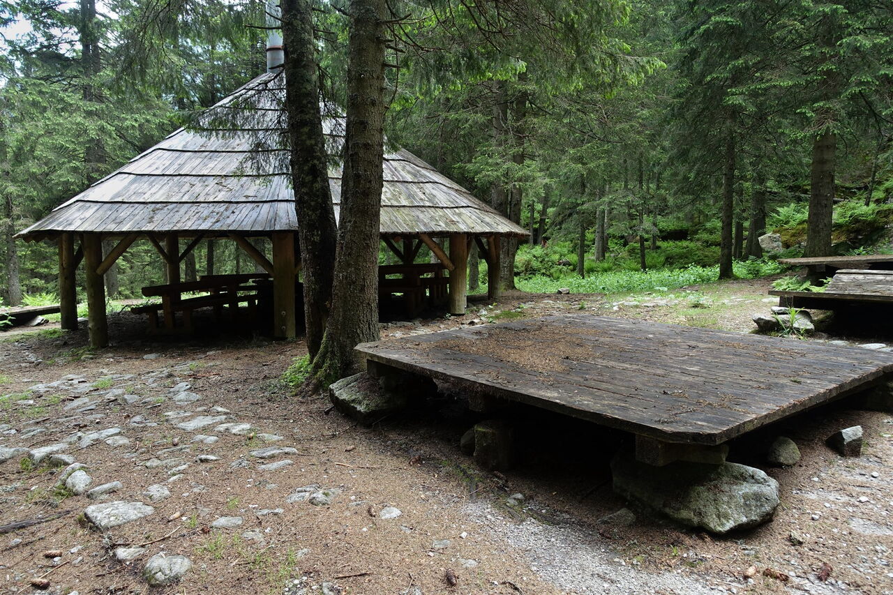 Wir überqueren das erste Mal den 03 Fluss Biela Voda (1045 m) und erreichen einen großen freien Platz mit einem überdachten Picknickplatz.