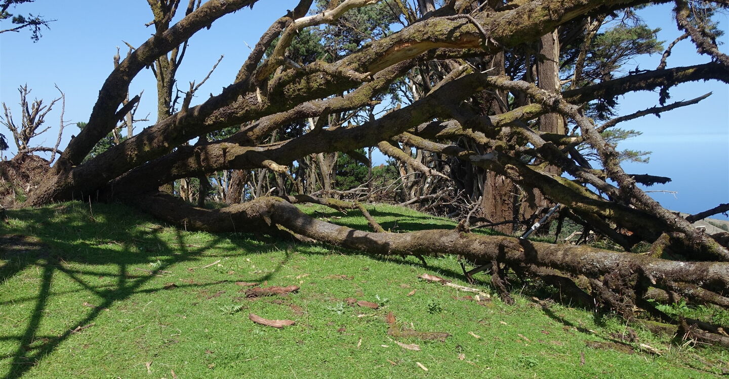 Das kleine, idyllisch gelegene Bergdorf Tinor befindet sich im Einflussbereich der Passatwolken. So wachsen dort prächtige Feigenbäume, Drachenbäume, vitaminreiche Wollmispelfrüchte, Maronenbäume, Kakteen und Agaven. Zwischen Hausruinen befinden sich kleine, sehr gepflegte Felder. Von dort führt die Wanderung auf einen der aussichtsreichsten Gipfel im Norden der Insel: Bei guter Sicht lassen sich die Nachbarinseln La Palma, La Gomera und Teneriffa ausmachen. Über das Bergdorf Tina schaut man herunter bis zum 1139 m tiefer liegenden Fährhafen von El Hierro. Mitten in der Natur kommt der Geist zur Ruhe.